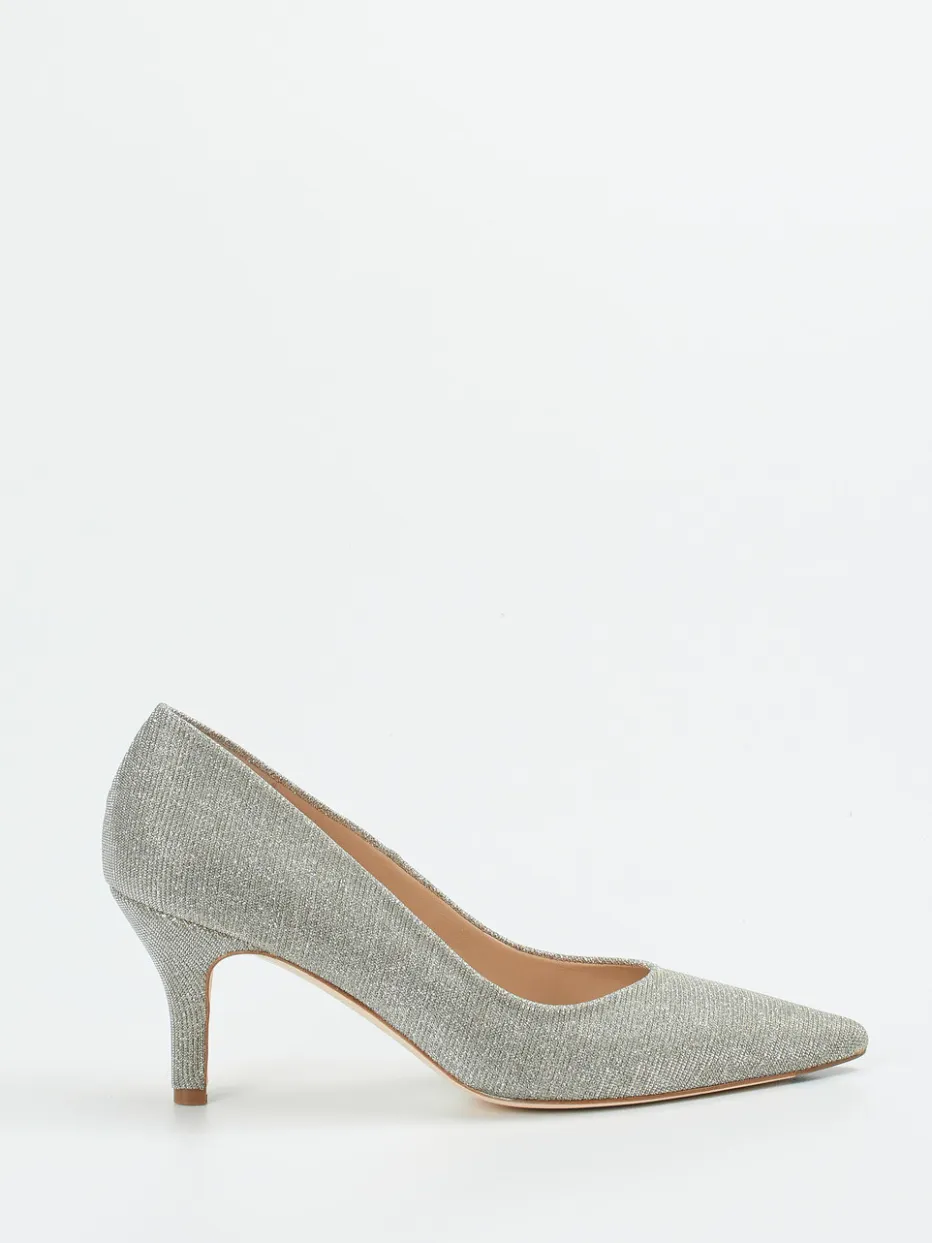 Funkelnder Auftritt in eleganter Form.Peter Kaiser präsentiert einen klassischen Damenpumps mit moderner Raffinesse. Ob festlicher Empfang oder stilvoller Soirée-Abend – das glänzende Metallic-Textil mit feiner Glitzerstruktur unterstreicht die spitz zulaufende Form und wirkt dabei gleichzeitig dezent wie aufmerksamkeitsstark. Der rund 5,5 cm hohe Kitten Heel ist mit Ton-in-Ton-Material bezogen, was dem Pumps zusätzliche Klarheit und Wertigkeit verleiht. Innen bieten Ziegenlederfutter und gepolstertes Fußbett angenehmen Tragekomfort. Der Look spielt mit den Trends „Quiet Luxury“ und „Metallic Accents“. Ein souverän designter Glitzerpumps mit der kompromisslosen Qualität von Peter Kaiser.