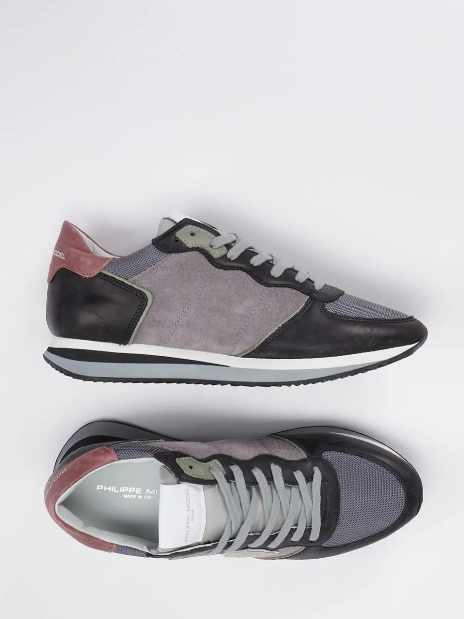 Retro-Runner mit Stilgefühl.Philippe Model interpretiert den klassischen Sneaker neu und verbindet Kalbleder mit Vintage-Flair. Ideal für urbane Tage im Streetstyle oder entspannte Reisen: Der Materialmix aus Kalbleder, samtig angeschliffenem Veloursleder und luftigem Mesh trifft auf eine flache Silhouette mit gedämpfter Farbgebung in Anthrazitgrau, Hellgrau und Altrosa. Logo-Details an Seite, Ferse und Zunge unterstreichen den Markencharakter. Die komfortable Porosohle mit Profil und Frotteefutter bietet angenehmen Tragekomfort. Ein stilprägendes Modell für trendorientierte Casual-Looks. Ein Sneaker mit gehobener Verarbeitung und modischer Profilsohle – typisch Philippe Model.