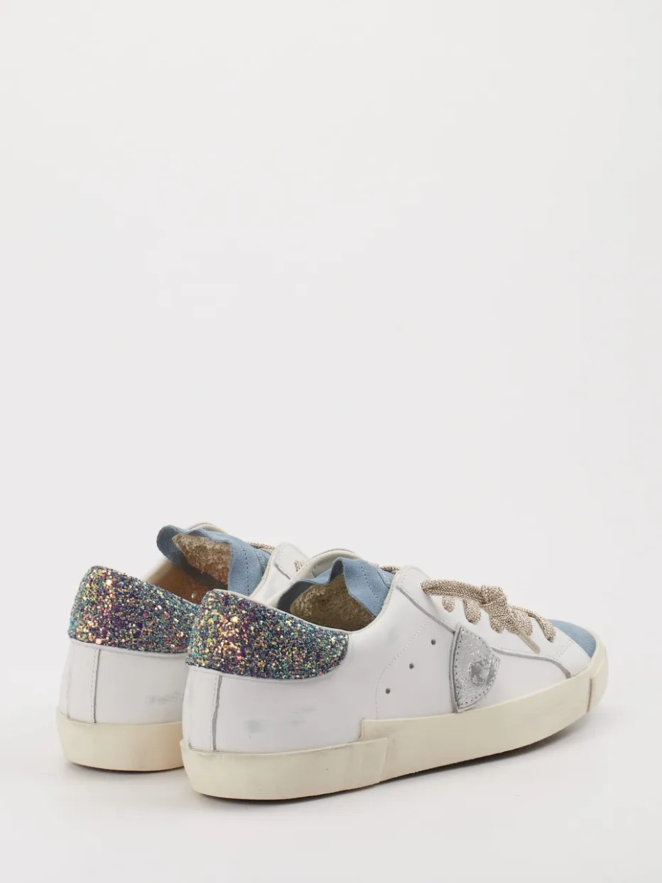 Glanz trifft auf Statement: Dieser Philippe Model Sneaker vereint Metallicleder mit glamourösen Glitzer-Details für ein stilvolles Streetwear-Update.