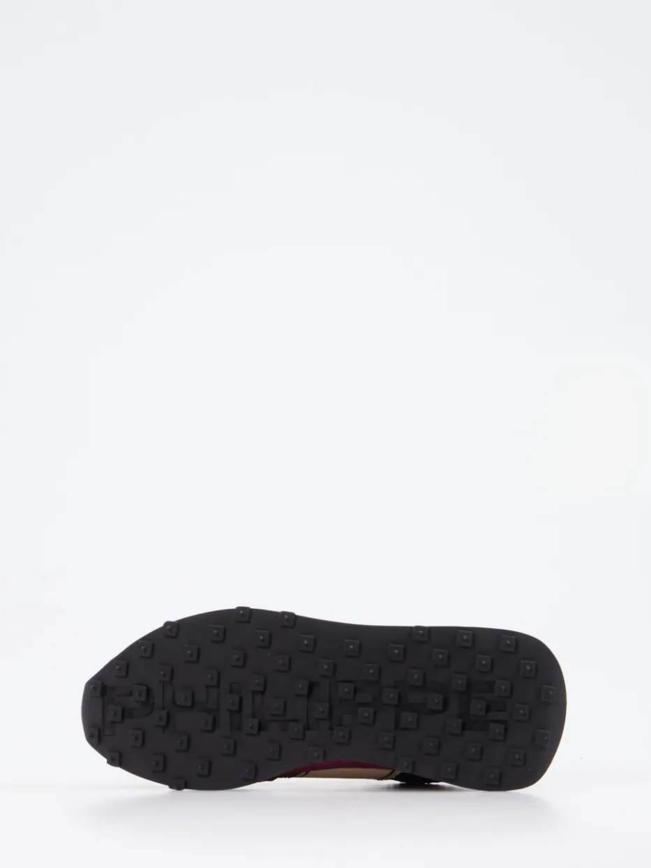 Die Kombination aus samtig angeschliffenem Veloursleder, strukturiertem Mesh und weichem Glattleder sorgt für hohe Atmungsaktivität und Komfort – perfekt für dynamische Alltäge. Das kräftige Brombeerrot wird durch Akzente in Schwarz und Cremeweiß kontrastiert, während die klassische Running-Form und altgoldene Metallösen das Design veredeln. Eine griffige Gummisohle unterstützt mit sicherem Tritt, ob beim Stadtbummel oder auf dem Weg ins Office. Stylings mit Cropped-Jeans oder Colorblocking-Jacke setzen den Look ideal in Szene.