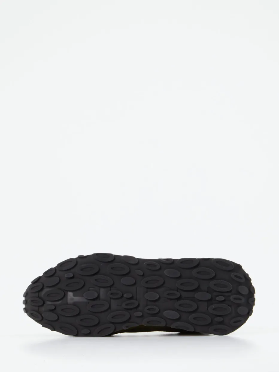 Dieser Retro-Sneaker kombiniert samtiges Veloursleder in Olivgrün mit Metallic-Details – perfekt für anspruchsvolle Urban Looks mit sportlicher Note.