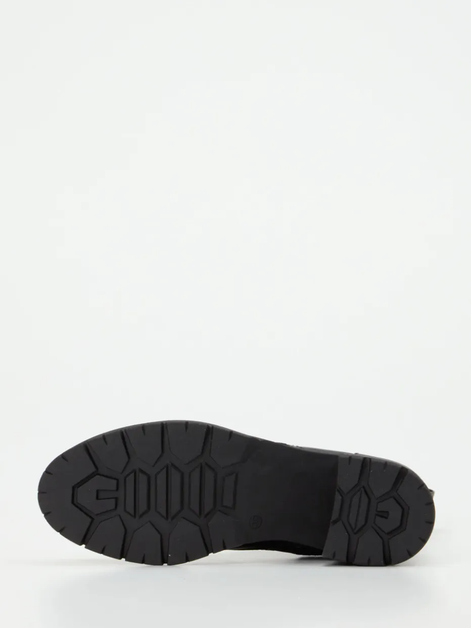 Piedi Nudi präsentiert bei diesen Damen-Stiefeletten ein lässig-elegantes Modell aus edlem schwarzen Kalbleder.