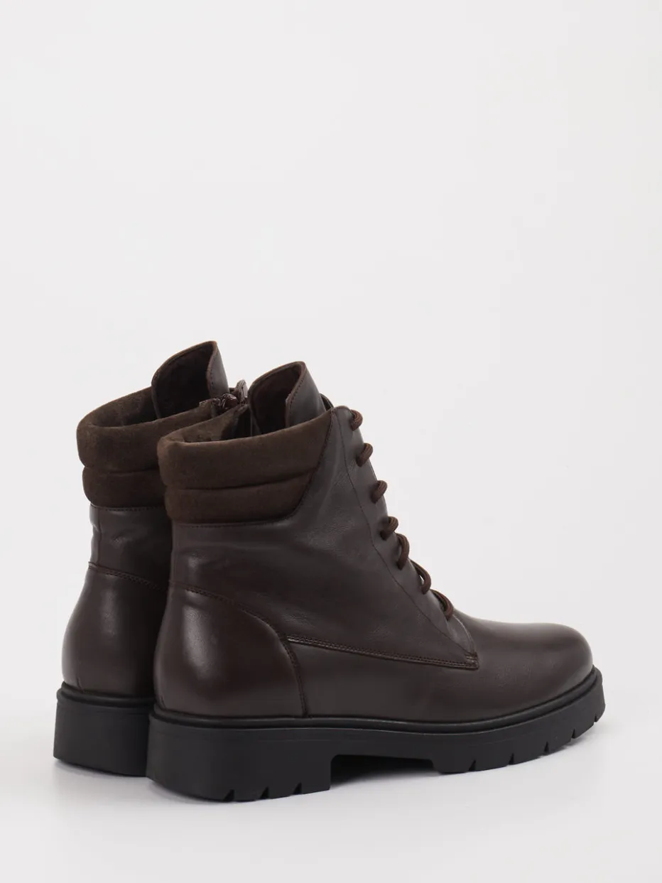 Für kühle Tage und widriges Wetter gemacht, bestehen die Damenboots aus hochwertigem Leder mit matter Oberfläche. Die dominante Farbe Dunkelbraun, die knöchelhohe Silhouette sowie tonale Schnürsenkel verleihen dem Modell eine cleane Ausstrahlung. Ein seitlicher Reißverschluss ergänzt die klassische Schnürung und erleichtert den Einstieg, während die rutschfeste Profilsohle sicheren Halt bei winterlichen Bedingungen bietet. Minimalistische Designelemente fügen sich harmonisch in aktuelle „Quiet Luxury“-Trends ein. Kombiniert zu Steppjacken oder Thermo-Leggings wird der Look alltagstauglich abgerundet.