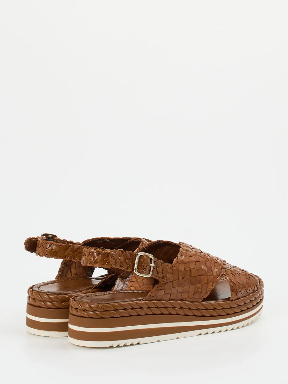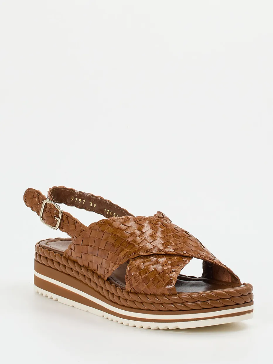 Damen Pons Quintana – Plateau-Sandale aus Flechtleder cognac