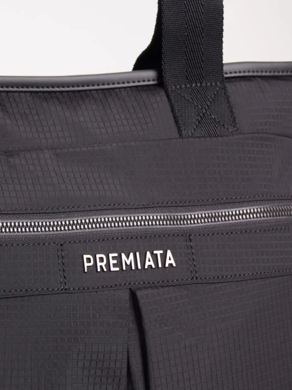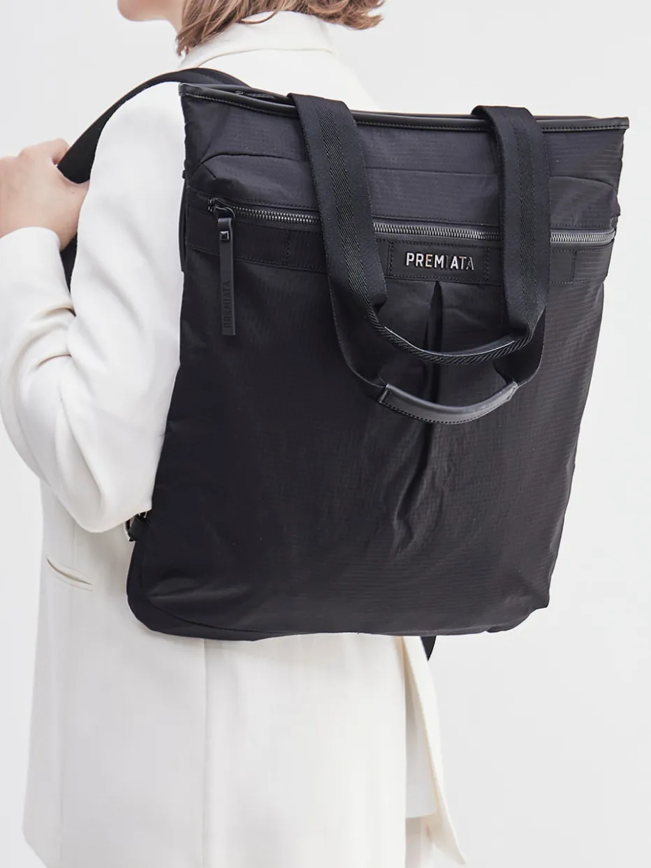 Schwarz, wandelbar und durchdacht: Dieser Premiata-Rucksack vereint minimalistisches Design mit urbaner Funktionalität auf überzeugende Weise.