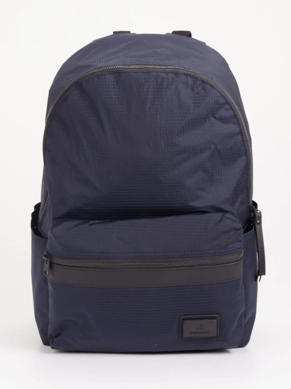 Einen robusten und belastbaren Alltagbegleiter stellt die Marke Premiata mit diesem Rucksack vor. Das dunkelblaue Nylon ist wasserabweisend. Der geräumige Innenraum enthält ein großes Steckfach, zwei Reißverschlussfächer und zwei Netzfächer, sodass Sie Ihre Utensilien organisiert und geordnet unterbringen können. An der Vorder- und Rückseite befinden sich weitere Reißverschlussfächer sowie zwei seitliche Fächer, in denen Sie beispielsweise eine Trinkflasche und einen kleinen Regenschirm verstauen können. Die angenehme Rückenpolsterung zeigt das Firmenlogo. Die Schulterriemen lassen sich an Ihre Bedürfnisse anpassen. – Material: Nylon – Farbe: Dunkelblau – Maße: 40 x 10 x 14 (H x B x T) – Verschluss: Reißverschluss – Innen: ein Steckfach, zwei Reißverschluss- und Netzfächer – Außen: zwei Reißverschlussfächer, zwei Seitenfächer – Schulterriemen: ca. 120 cm, verstellbar