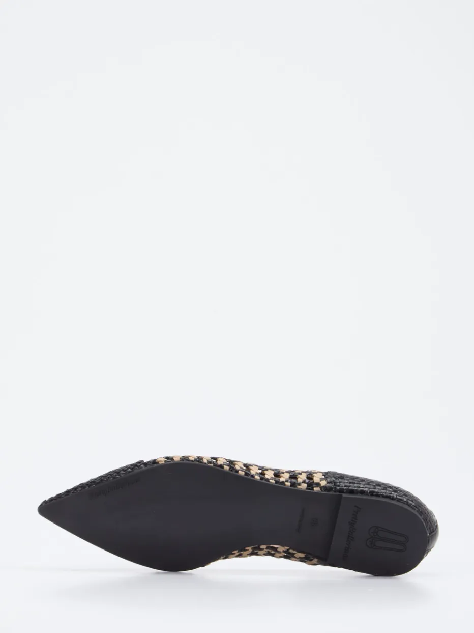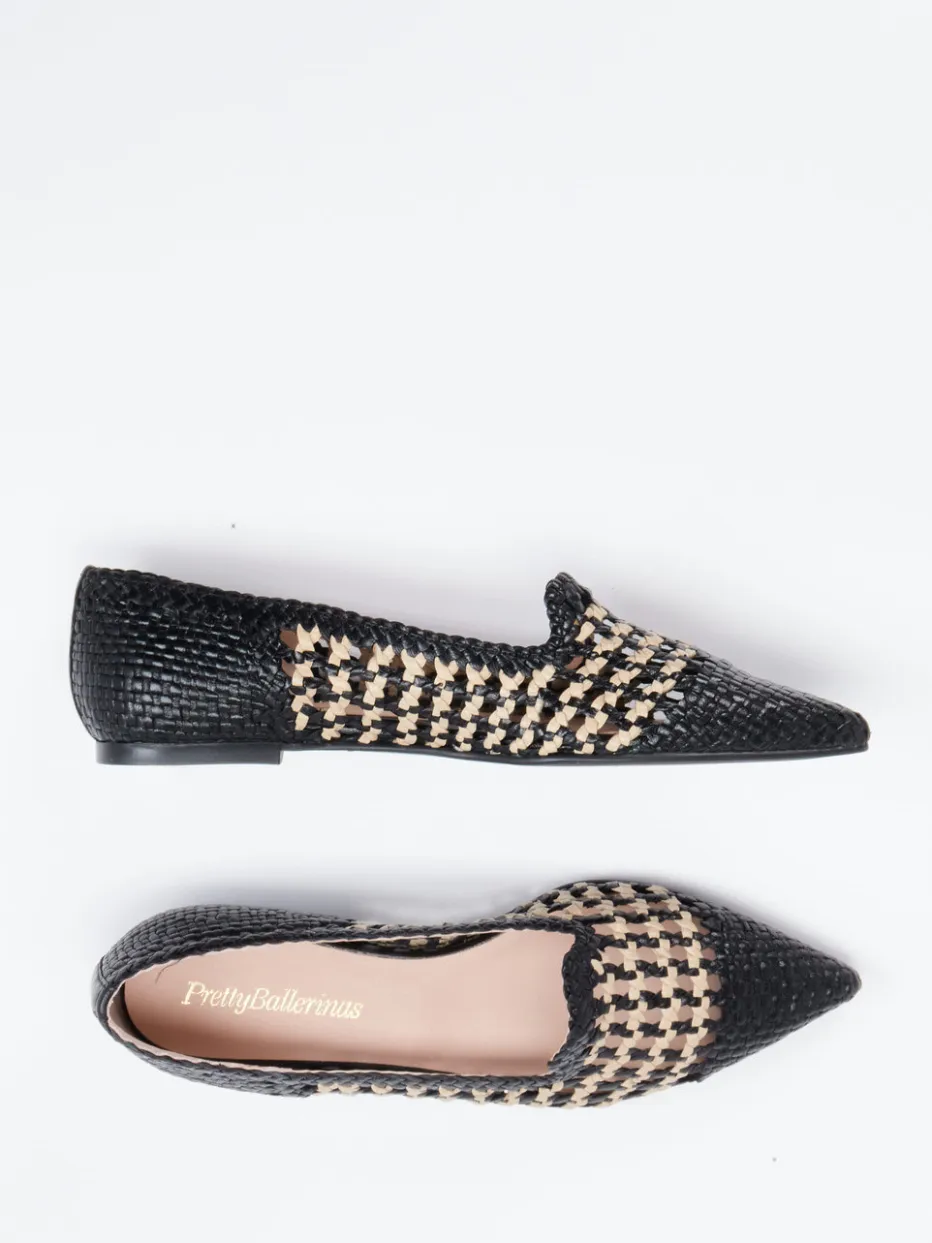 Eleganter Begleiter mit luftiger Raffinesse.Pretty Ballerinas präsentiert einen Damen-Slipper im geflochtenen Loafer-Stil. Ideal für Frühlingstage im Büro oder beim Stadtbummel: Das weich verarbeitete Kalbleder erhält durch eine zweifarbige, matt glänzende Flechtstruktur einen modernen Twist. Schlichte Schlupfform, geschlossene Ferse und eine spitz zulaufende Silhouette sorgen für eine ausdrucksstarke, minimalistische Formensprache. Die Farbkombination aus Schwarz, Beige und Braun unterstreicht die klassische Note im Vintage-Stil. Luftige Partien entlang der Seiten ermöglichen hohen Tragekomfort – besonders bei warmen Temperaturen. Kombinierbar mit Leinenhose oder fließendem Midirock. Ein femininer Sommerschuh mit ruhiger Eleganz – stiltypisch Pretty Ballerinas.