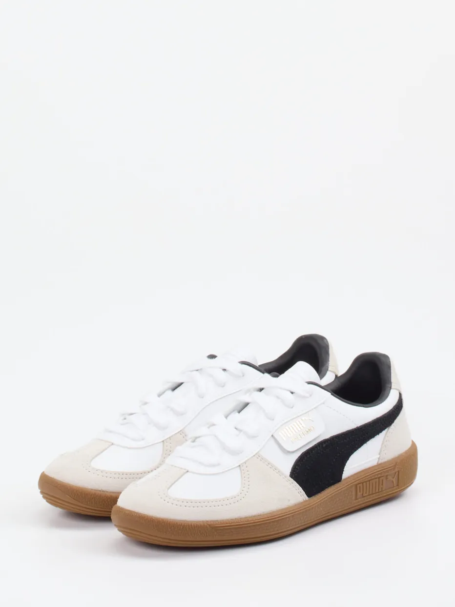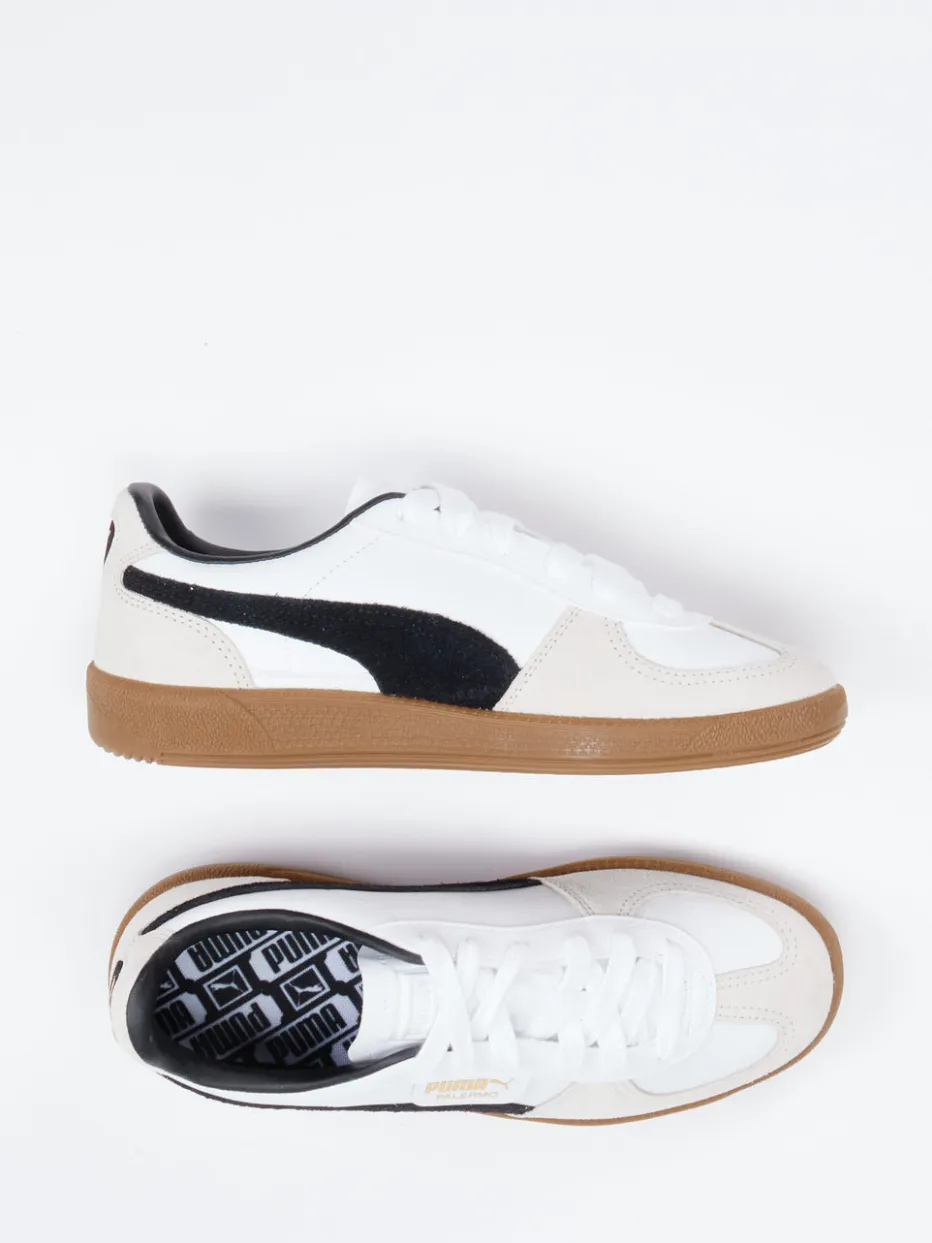 Stadionschick neu gedacht.Puma zeigt mit diesem Retro-Sneaker der Linie „Palermo“, wie stilvoll sportliche Heritage sein kann. Für urbane Looks im Alltag überzeugt das Modell mit weißem Kalbleder, samtig grauen Veloursakzenten und schwarzen Markenstreifen. Die flache, gerundete Silhouette mit Schnürung, gepolstertem Einstieg und strukturierter Gummisohle greift authentisch den Stil der 80er auf. Goldfarbene Logodetails und der Unisex-Charakter runden das Design ab. Ideal für Streetwear-Fans und Retro-Enthusiasten. Kombinationsstark zu Sportsocken und Vintage-Jacke. Mit klassischer Dämpfung und atmungsaktivem Ortholite-Fußbett bietet Puma markentypischen Komfort mit ikonischem Wiedererkennungswert.