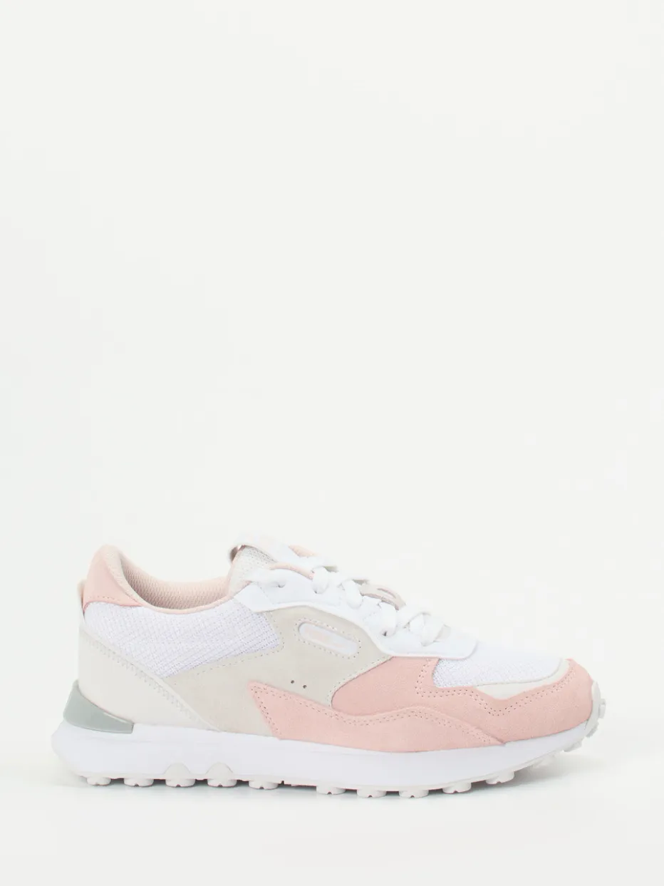 Pastell trifft Retro neu interpretiert.Dieser Damen-Sneaker von Puma vereint Nostalgie und Moderne: Die Retro-Runner-Silhouette trifft auf einen trendstarken Mix aus atmungsaktivem Mesh, Textil mit satinierter Oberfläche und samtig angeschliffenem Veloursleder. Rosé als Hauptfarbe, akzentuiert durch Weiß und Hellgrau, sorgt für einen frischen, femininen Auftritt. Reflektierende Fersendetails, eine profilierte Gummisohle und die gepolsterte Ferse bieten funktionalen Komfort im Alltag oder bei leichter Aktivität. Das Ton-in-Ton-Branding ergänzt das Gesamtbild dezent. Ideal zu pastellfarbenen Leggings oder urbanem Streetwear-Style. Puma vereint Komfort mit einem stylischen Retro-Update für die neue Saison.