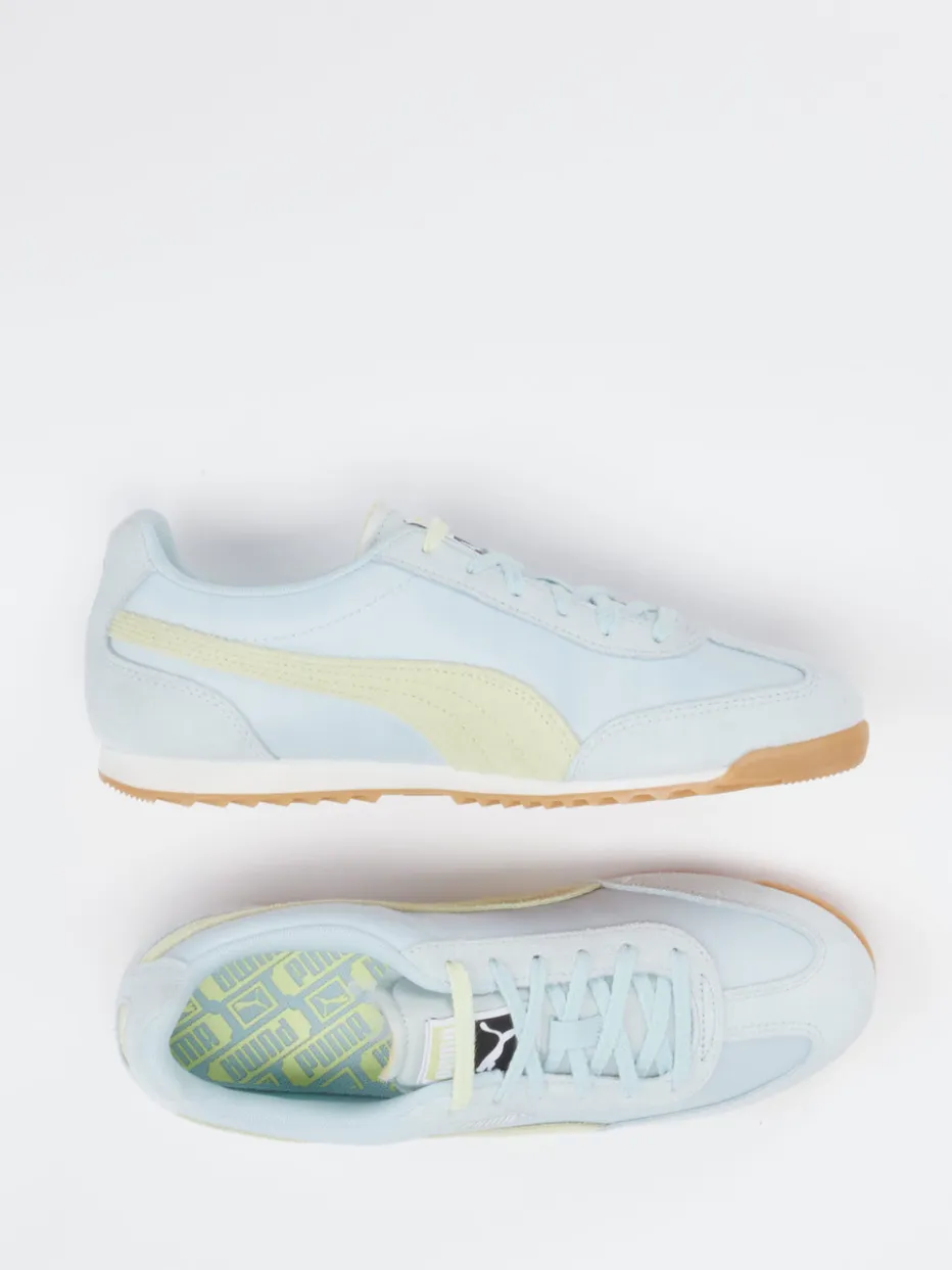 Pastell trifft Streetstyle. Puma verbindet bei diesem Retro-Sneaker klassisches Design mit frischer Farbgebung. Ideal für entspannte City-Tage überzeugt der Sneaker durch Veloursleder-Overlays auf pastellblauem Untergrund und eine profilierte Gummisohle mit 90s-Touch. Die matte Oberfläche und die schlanke Form unterstreichen den Vintage-Charakter, während tonale Nähte und Logo-Details auf Zunge und Seite markentypische Akzente setzen. Die Schnürung sorgt für sicheren Halt, das textile Innenfutter für bequemen Tragekomfort. Ein Modell für Trendbewusste, die Streetwear mit einem Hauch Nostalgie kombinieren. Puma bringt hier gekonnt Designgeschichte ins Jetzt – stilvoll und alltagstauglich.