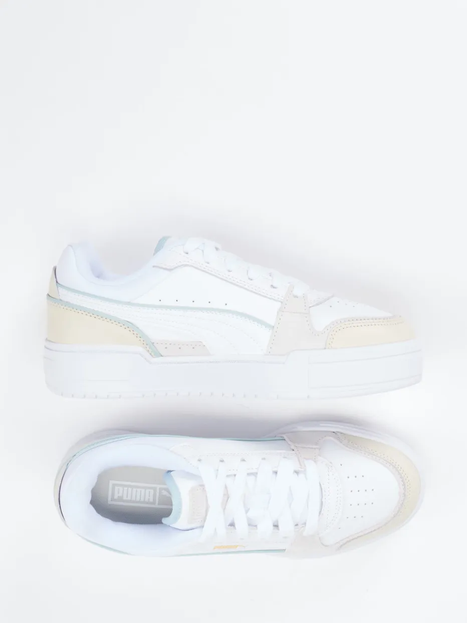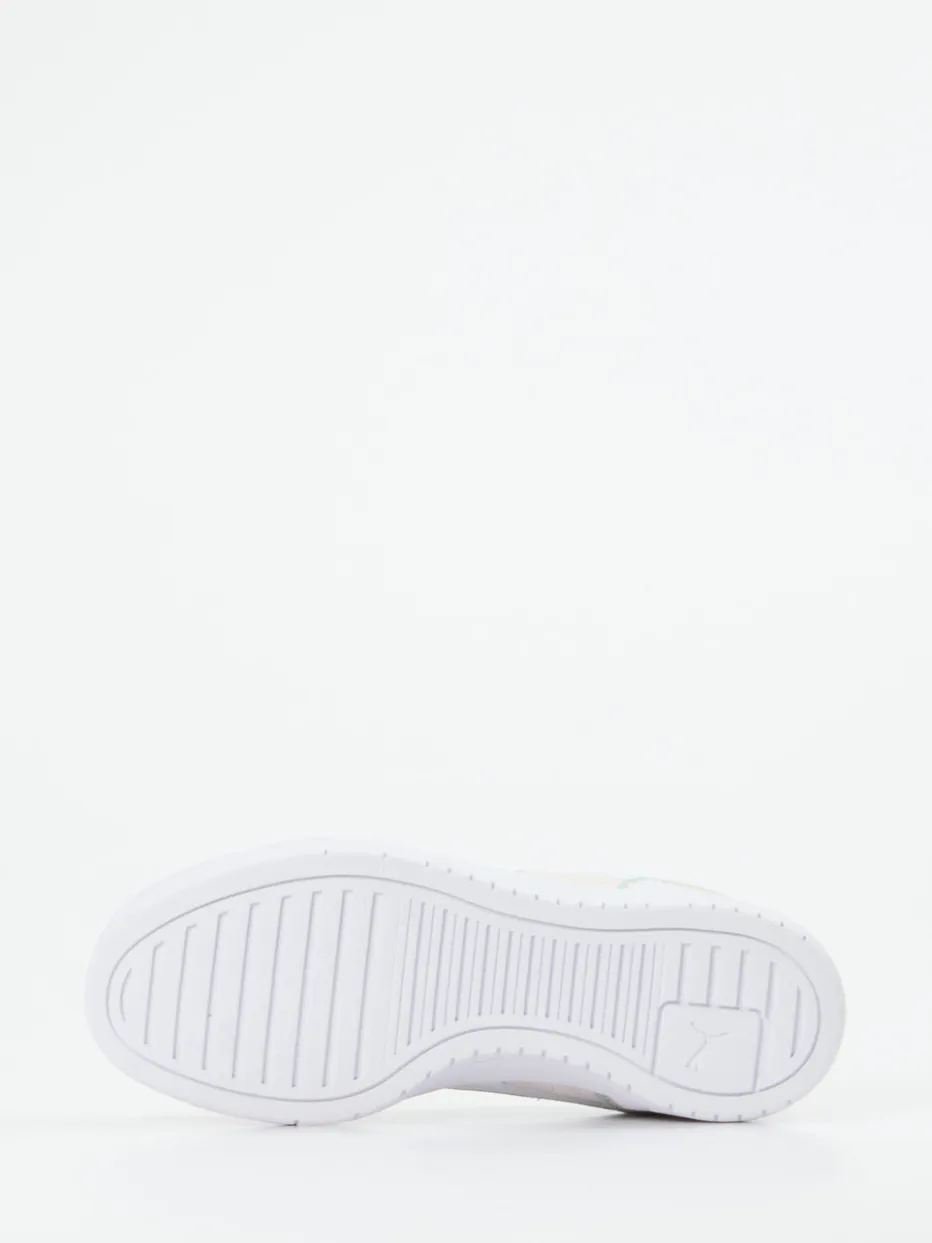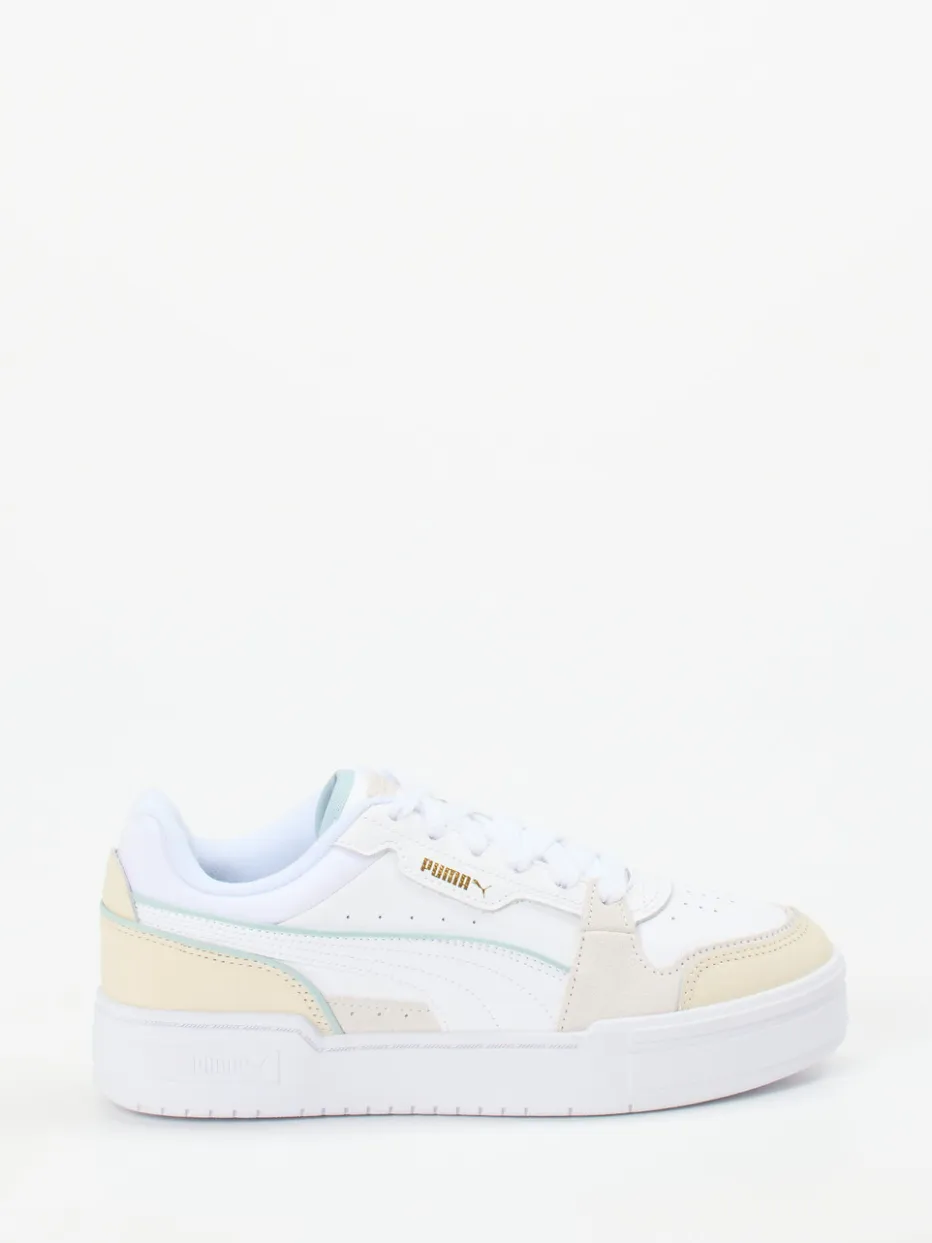 Retro-Charme trifft frühlingsfrische Farben.Puma bringt mit diesem Damen-Sneaker eine moderne Interpretation des Retro-Court-Stils. Perfekt für Freizeit und Urlaub, überzeugt der Schuh durch einen hochwertigen Materialmix aus Leder mit samtigem Velours und textilem Futter. Die dominante Farbe Weiß wird durch Cremebeige und Pastellblaugrün pointiert, ergänzt durch eine goldene Logoprägung und farblich abgesetzte Overlays. Die klassische Schnürung, die verstärkte Ferse sowie eine profilierte Gummisohle bieten Komfort und Stabilität. Pastelltöne und klare Linien machen ihn zum idealen Kombipartner für Streetstyle mit Minimalismus-Attitüde. Qualität und Design, wie man es von Puma kennt.