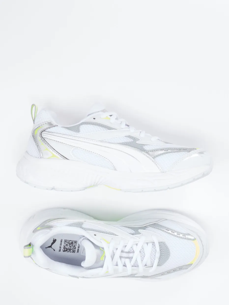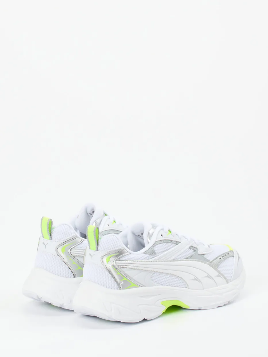 Neon trifft Retro-Laufstil.Puma präsentiert diesen dynamischen Freizeitsneaker in moderner Running-inspirierter Formgebung. Das Obermaterial aus Textil zeigt sich in einer Kombination aus glänzenden Mesh-Strukturen und synthetisch wirkenden Overlays. Kontraststarke Details in Neon-Limette und reflektierende Elemente setzen markante Designzeichen. Auffällig voluminös in der Silhouette und geprägt vom Retro Runner Trend, wird der Schuh zum Statement in jedem Streetwear- und Athleisure-Look. Schnürung und Zuglasche hinten sorgen für funktionelle Alltagstauglichkeit. Ein Sneaker, der mit ikonischem Design und sportlicher Attitüde das Erbe des Y2K-Styles neu interpretiert.