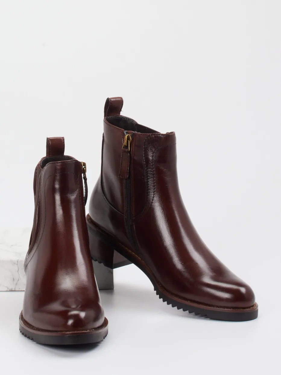 Stilsicher durch Herbsttage.Ralph Harrison präsentiert mit dieser Damen-Stiefelette einen klassischen Chelsea Boot in hochwertiger Ausführung. Ideal für den Alltag zwischen Büro und Großstadt bieten diese Boots eine elegante Lösung für stilbewusste Outfits. Aus echtem Lammleder gefertigt, überzeugen sie mit einer glänzenden Oberfläche und feinen Ton-in-Ton-Nähten. Der tiefe Braunton kombiniert sich harmonisch mit dem knöchelhohen, klar geformten Schaft und beidseitigen Elastikeinsätzen. Eine griffige Gummisohle ergänzt den eleganten Holzoptikabsatz und bietet sicheren Halt. Als detailreduziertes Modell mit Heritage-Charakter passen sie perfekt zum Trend „Quiet Luxury“. Komfort und Stil in ausgewogener Balance – das ist moderne Fußmode à la Ralph Harrison.