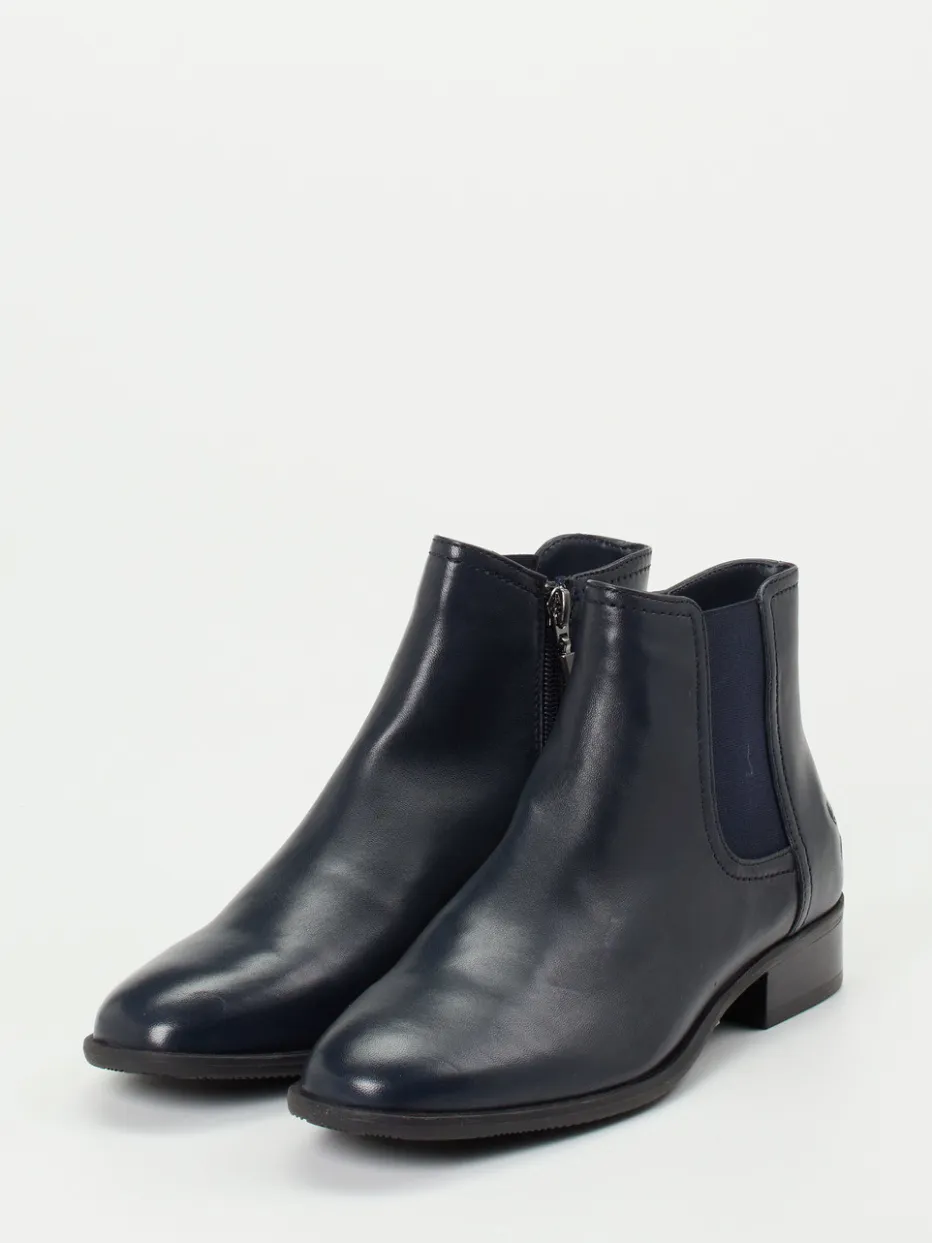 Klassik trifft Komfort.Die Damen-Stiefelette von Ralph Harrison überzeugt als stilsicherer Begleiter für Büro und Freizeit. Gefertigt aus dunkelblauem Kalbleder mit dezentem Glanz unterstreicht das Modell seine hochwertige Verarbeitung durch tonige Elastikeinsätze und wenige, fein gesetzte Nähte. Die knöchelhohe Form mit leicht zulaufender Front wirkt modern und feminin. Dank Reißverschluss und flexiblem Elasteinsatz gelingt das An- und Ausziehen mühelos, während die profilierte Gummisohle rutschhemmend wirkt – ideal für urbanes Unterwegssein. Ihr minimalistischer Auftritt passt zu Monochrome-Trends und dem Stilprinzip Quiet Luxury. Perfekter Kombipartner zu Wollmantel oder Hosenanzug. Eleganz, Funktion und Passform – stilvoll vereint von Ralph Harrison.