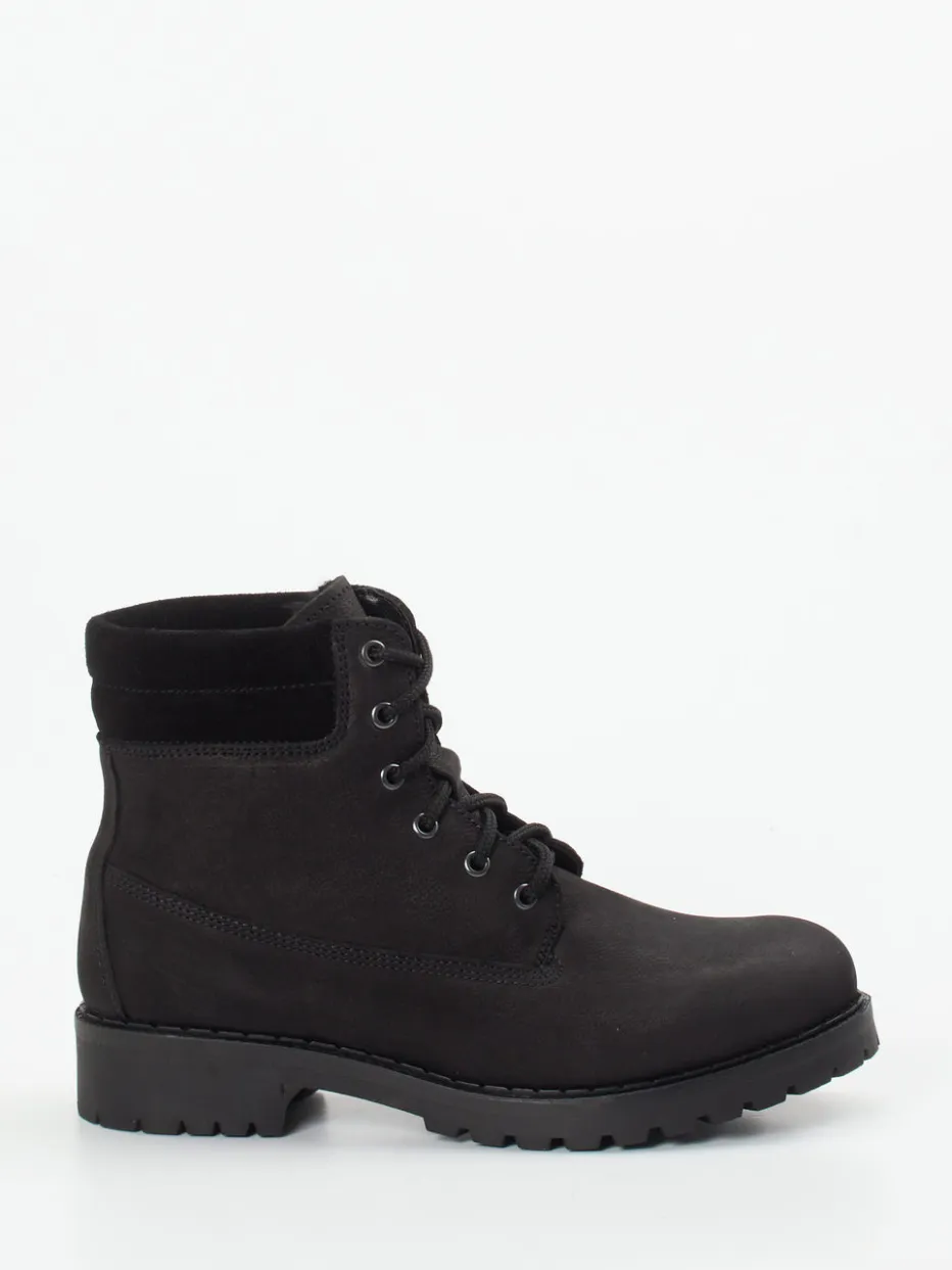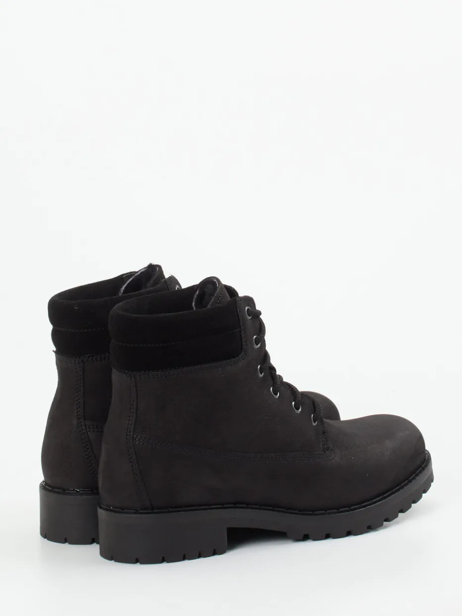 Unverwüstlich durch Herbst und Winter.Die Marke Ralph Harrison Country präsentiert robuste Schnürboots für urbane Wege und Outdoor-Momente. Ob auf herbstlichen Waldwegen oder im winterlichen Stadtverkehr – diese Schnürstiefeletten bieten verlässlichen Komfort. Das mattschwarze Nubukleder ist samtig angeschliffen und trotzt Wind, Nässe und Schmutz. Innen sorgt warmes Lammfell für beste Bedingungen an kalten Tagen. Die klassische, robuste Silhouette wird durch tonige Nähte, Metallösen und einen gepolsterten Veloursleder-Schaft akzentuiert. Die griffige Gummisohle bietet sicheren Halt auf unterschiedlichstem Terrain. Ideal kombinierbar mit Outdoorjacken oder Denim. Wertige Funktion trifft lässigen Stil – mit authentischem Country-Charakter.
