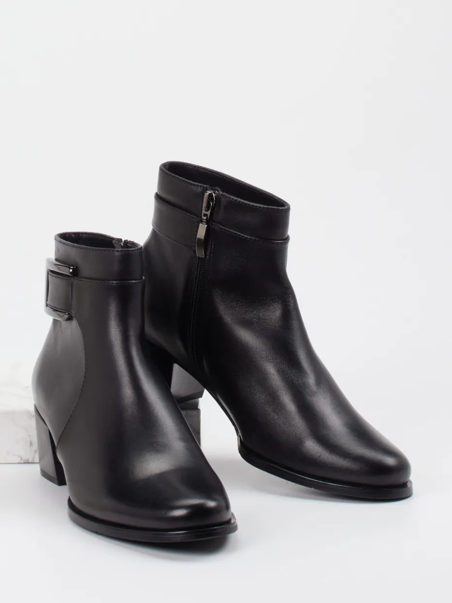 Diese Stiefelette aus schwarzem Lammleder kombiniert klassische Eleganz mit modernen Details und alltagstauglichem Komfort.