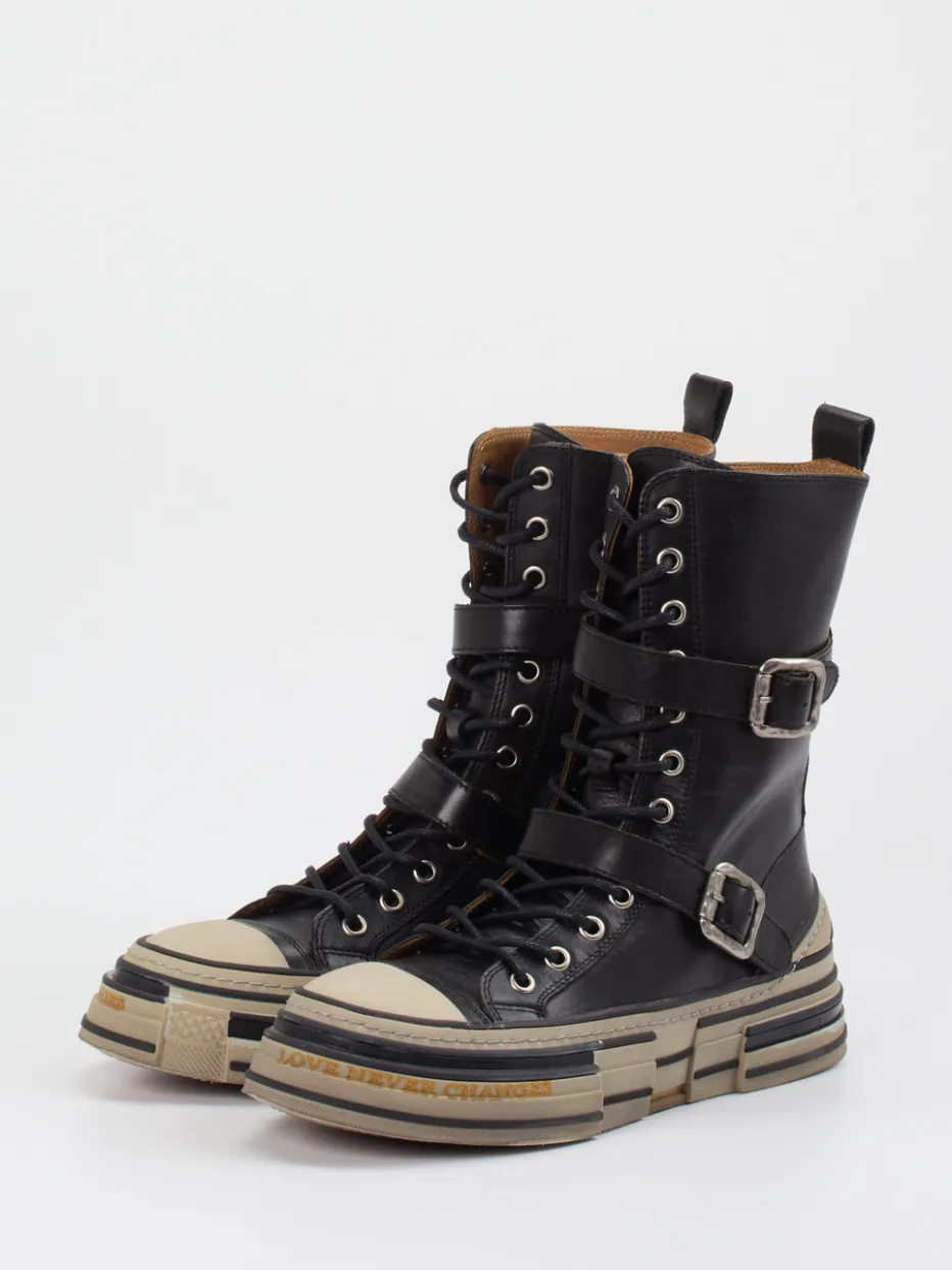 Dieser High-Top Boot von Rebecca White kombiniert butterweiches Lammleder mit grungigen Streetstyle-Elementen – ideal für markante Looks mit urbanem Charakter.