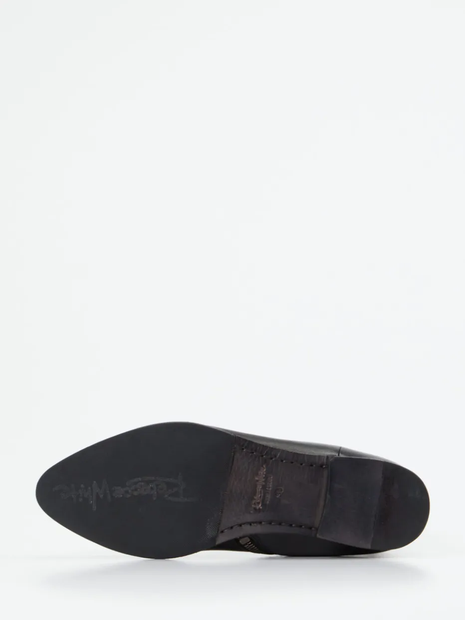 Minimalismus trifft Alltagstauglichkeit.Rebecca White präsentiert eine Damen-Stiefelette mit urbanem Anspruch. Ob fürs Büro oder einen stilvollen Stadtbummel – das weiche Lammleder mit matter Oberflächentextur sorgt für angenehmen Tragekomfort und eine hochwertige Optik. Die tiefschwarze Farbe unterstreicht den minimalistischen Look, akzentuiert durch einen seitlich platzierten silberfarbenen Reißverschluss. Die schmal zulaufende Form und der flache Blockabsatz betonen den eleganten Charakter mit dezenter Western-Anmutung. Dank halbierter Gummi-/Ledersohle verbinden sich Stabilität und Flexibilität im Alltag. Besonders harmonisch in Kombination mit einem anthrazitfarbenen Wollmantel. Ein durchdachtes Designstück für moderne Klassikerinnen.
