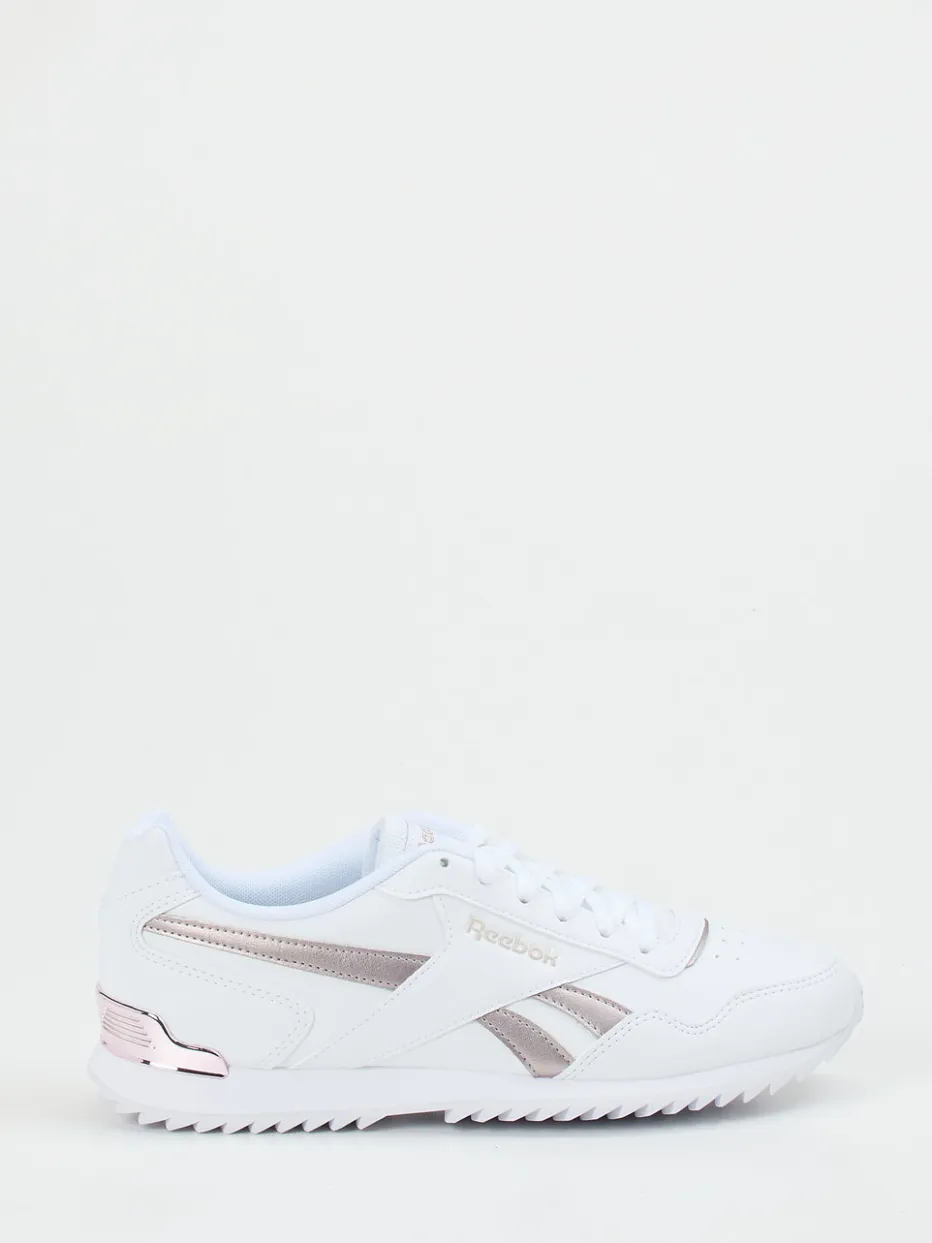 Streetstyle trifft Komfort.Der Reebok Retro-Sneaker für Damen bringt Vintage-Flair und modernen Komfort in Einklang. Ideal für Freizeitmomente, bei denen Stil und Bequemlichkeit gefragt sind. Gefertigt aus weißem Synthetikleder mit matter Oberfläche überzeugt der Schuh mit kupferfarben schimmernden Metallic-Details an der Ferse und Ton-in-Ton-Nähten. Die klassische, flache Silhouette mit gepolstertem Einstieg und Ortholite-Innensohle sorgt für ein angenehm leichtes Tragegefühl. Das wellenartige Profil der Gummisohle sowie das seitliche Logo unterstreichen den sportlich-eleganten Look. Perfekt kombinierbar mit Casualwear in neutralen oder pastelligen Tönen. Ein Style-Must-have für trendorientierte Retro-Fans mit Sinn für Alltagstauglichkeit.