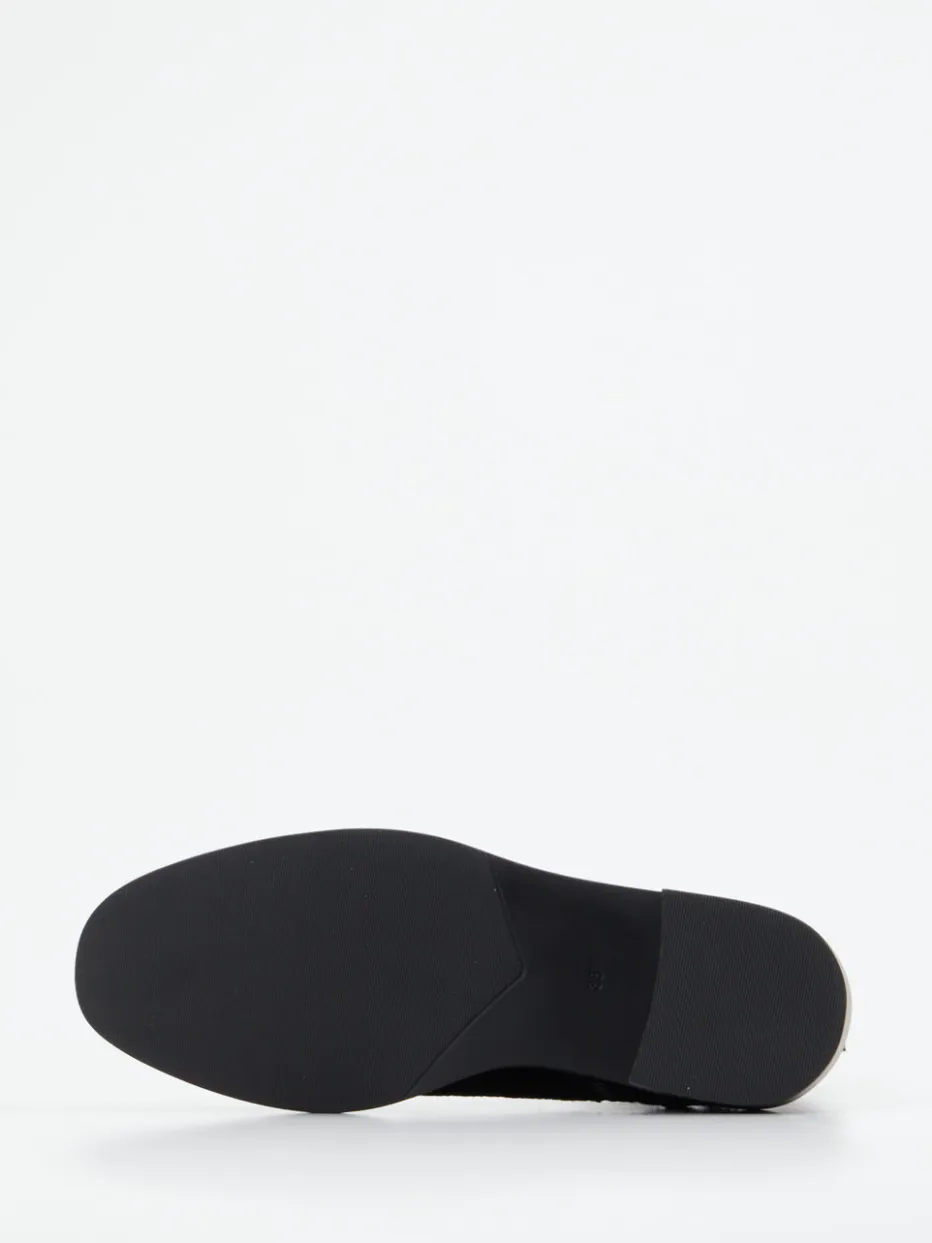 Glamour trifft Minimalismus.Regarde Le Ciel interpretiert die klassische Schnürstiefelette neu. Für alle, die Komfort und trendige Akzente im Alltag vereinen möchten, bietet dieses Modell ein samtiges Finish aus schwarzem Veloursleder. Dezente Strassdetails an Ferse und Schaft setzen schimmernde Highlights, während die schmale, knöchelhohe Silhouette mit Schnürung und Innenreißverschluss überzeugt. Eine schwarze Gummisohle mit Blockabsatz sorgt für angenehme Laufhöhe und Alltagstauglichkeit. Inspiriert vom Quiet-Luxury-Trend lässt sich der Look vielseitig in urbane Garderoben integrieren – ideal zu Strickkleidern oder monochromen Outfits. Stilvolle Verarbeitung und dezente Glitzerwirkung prägen die Handschrift von Regarde Le Ciel.