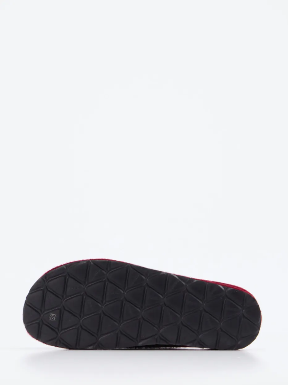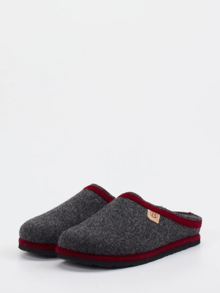 Ob nach einem langen Tag oder für entspannte Stunden am Wochenende – die in Anthrazit gehaltenen Pantoffeln aus hochwertigem Wollfilz mit filziger Haptik bieten ein ausgeglichenes Fußklima. Die dunkelrote Einfassung setzt gezielte Farbakzente, während die offene Schlupfform in Clog-Silhouette bequemes Hineinschlüpfen ermöglicht. Das geformte Fußbett unterstützt den Halt, ergänzt durch eine rutschhemmende Gummisohle. Inspiriert von Alpine Heritage und dem Trend zu Natural Comfort, passt das Modell ideal zur loungebetonten Winter-Garderobe.