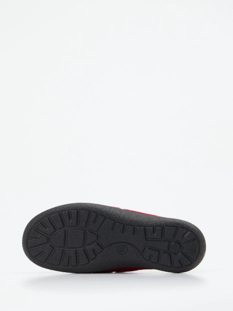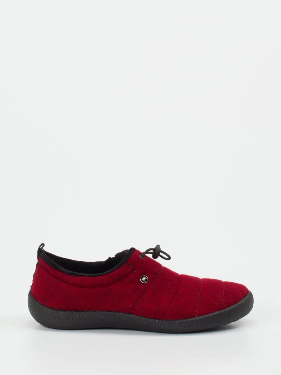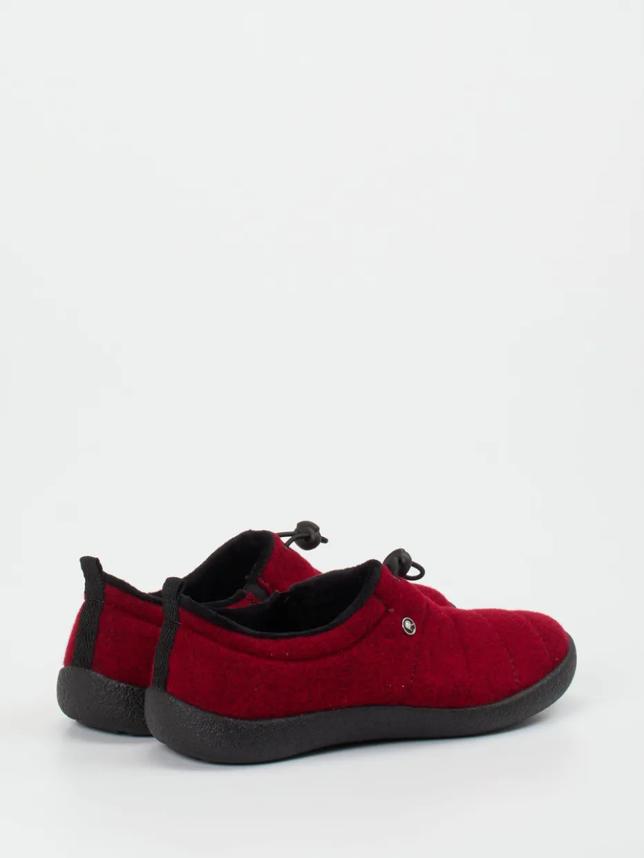 Wohlfühlkomfort für drinnen & draußen.Rohde präsentiert klassisch-moderne Hausschuhe in gefütterter Slipper-Form. Für entspannte Momente im Alltag oder kurze Wege zur Haustür bieten diese dunkelroten Filzmodelle angenehmen Wärmerückhalt und einen minimalistischen Look. Das samtig-weiche Obermaterial wird durch schwarze Kordelschnürung mit Stopper ergänzt, während die rutschhemmende Gummisohle sicheren Tritt verspricht. Die runde, flache Silhouette mit dezenten Ziernähten unterstreicht den lässigen Charakter – inspiriert von Outdoor-Designs, gemacht für Komfortliebhaber. Als Teil der Loungewear-Trends sind sie auch stilistisch am Puls der Zeit. Markentypische Qualität trifft auf modischen Funktionalismus.