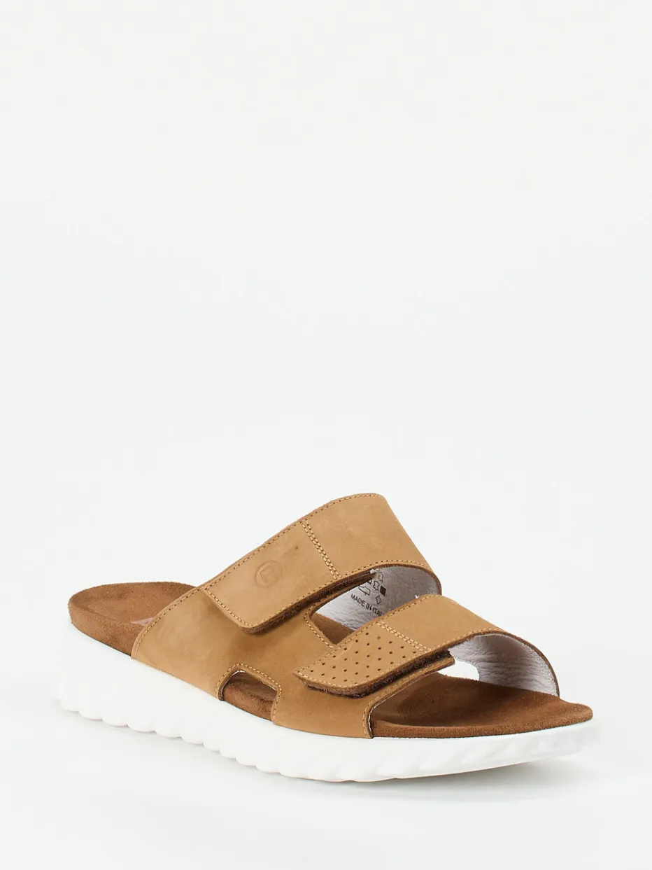 Veloursartig matt strukturiertes Nubukleder, ergonomisches Fußbett und cleane Klettverschlüsse kennzeichnen diesen komfortorientierten Sommerbegleiter.