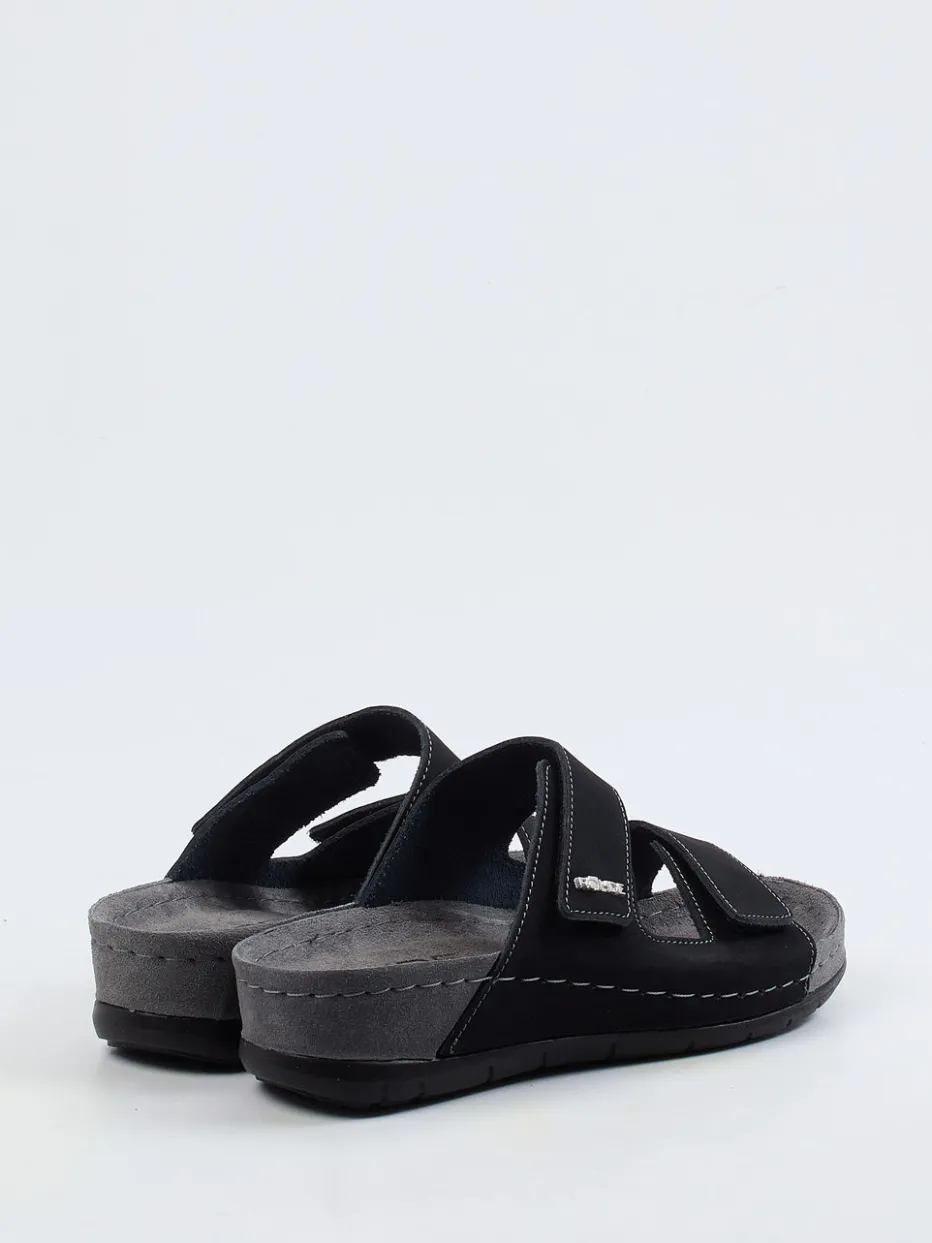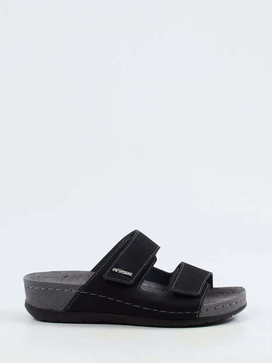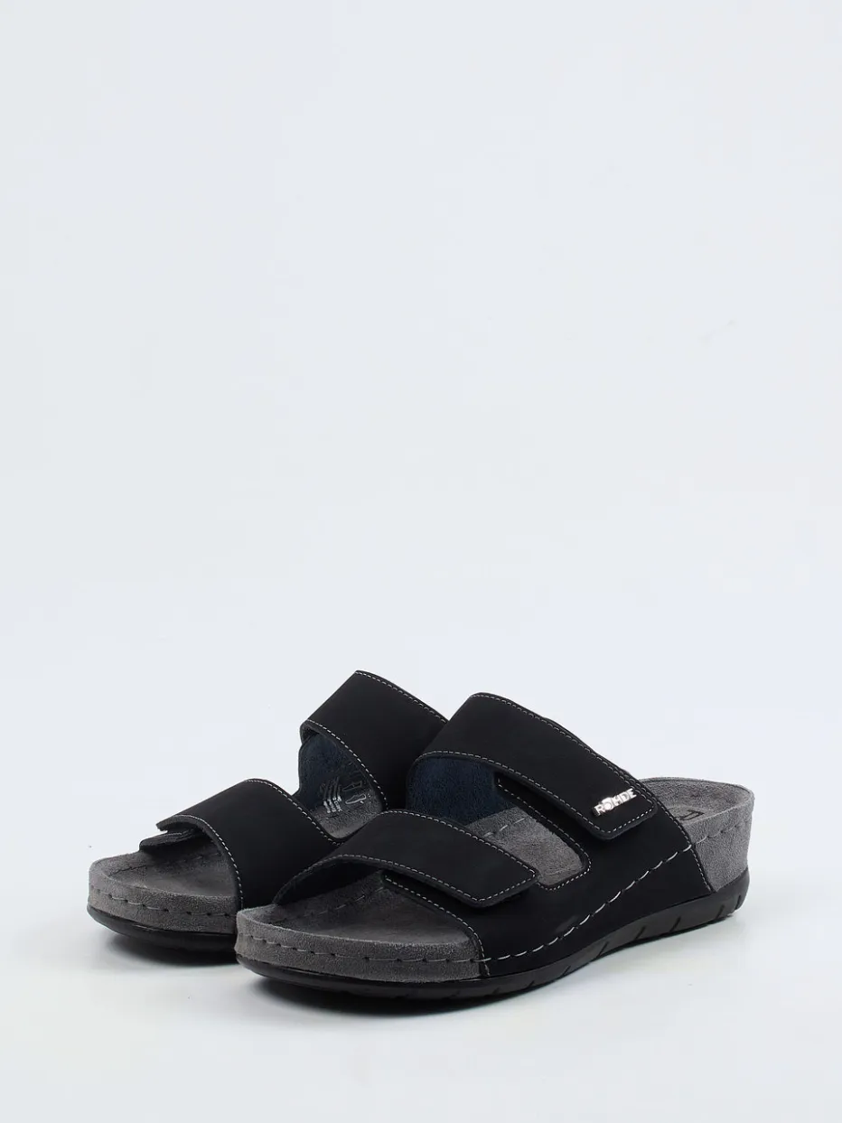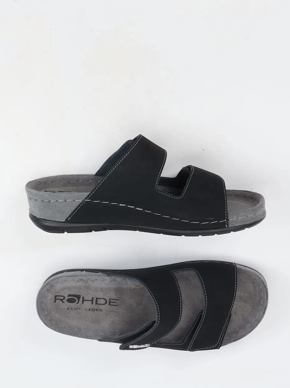 Funktion trifft Schlichtheit.Die Marke Rohde präsentiert mit diesen Komfort-Pantoletten ein Modell für anspruchsvolle Herren. Nach einem langen Tag bieten die ergonomisch geformten Fußbetten angenehme Entlastung. Schwarzes Nubukleder, samtig angeschliffen und akzentuiert durch helle Kontrastnähte, sorgt für eine moderne Optik. Zwei breite, verstellbare Klettverschlüsse garantieren passgenauen Halt, während eine keilförmige Gummisohle mit rutschhemmender Struktur für Stabilität sorgt. Das minimalistische Design ist von funktionalem Komfort und der Health-Inspired Footwear-Bewegung inspiriert. Ideal kombinierbar mit legerer Homewear oder leichten Freizeitoutfits. Zeitlos bequem mit Fokus auf Alltagstauglichkeit – Qualität von Rohde.