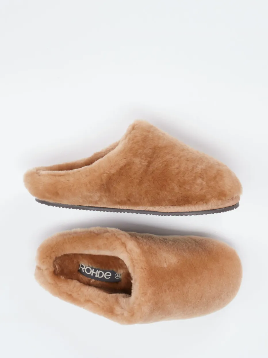 Wärme trifft skandinavische Gemütlichkeit.Die Marke Rohde bietet mit dieser Hausschuh-Kollektion perfekt abgestimmten Komfort. Diese Pantoffeln wurden aus hochwertigem Lammfell gefertigt, das flauschig-weich wärmt und zugleich atmungsaktiv ist. Die karamellbraune Farbgebung und der geschlossene, aber hinten offene Schnitt unterstreichen das entspannte Design. Eine griffig profilierte Gummisohle verleiht Trittsicherheit auf glatten Böden. Der Look passt ideal zum Cozy Living-Trend und ergänzt Loungewear stilvoll. Ideal kombiniert mit Wollsocken oder einem Fleeceanzug. Ein Hausschuh, der natürliche Materialien mit Alltagskomfort auf elegante Weise vereint.