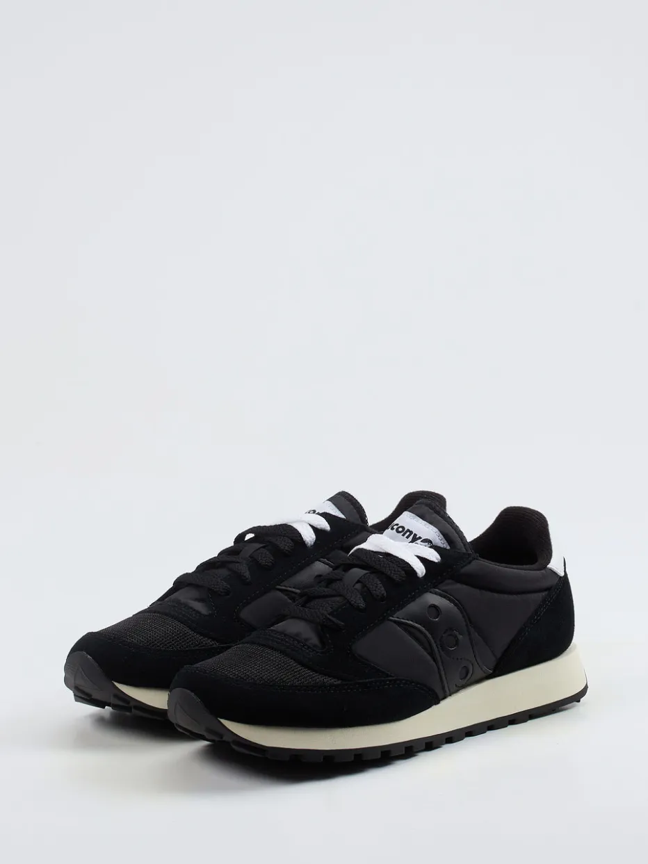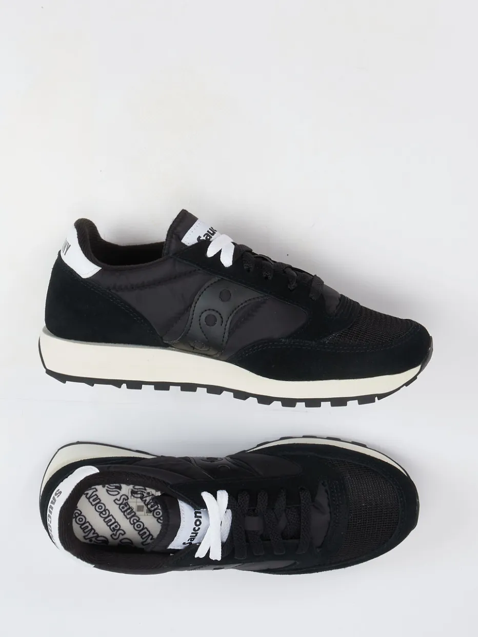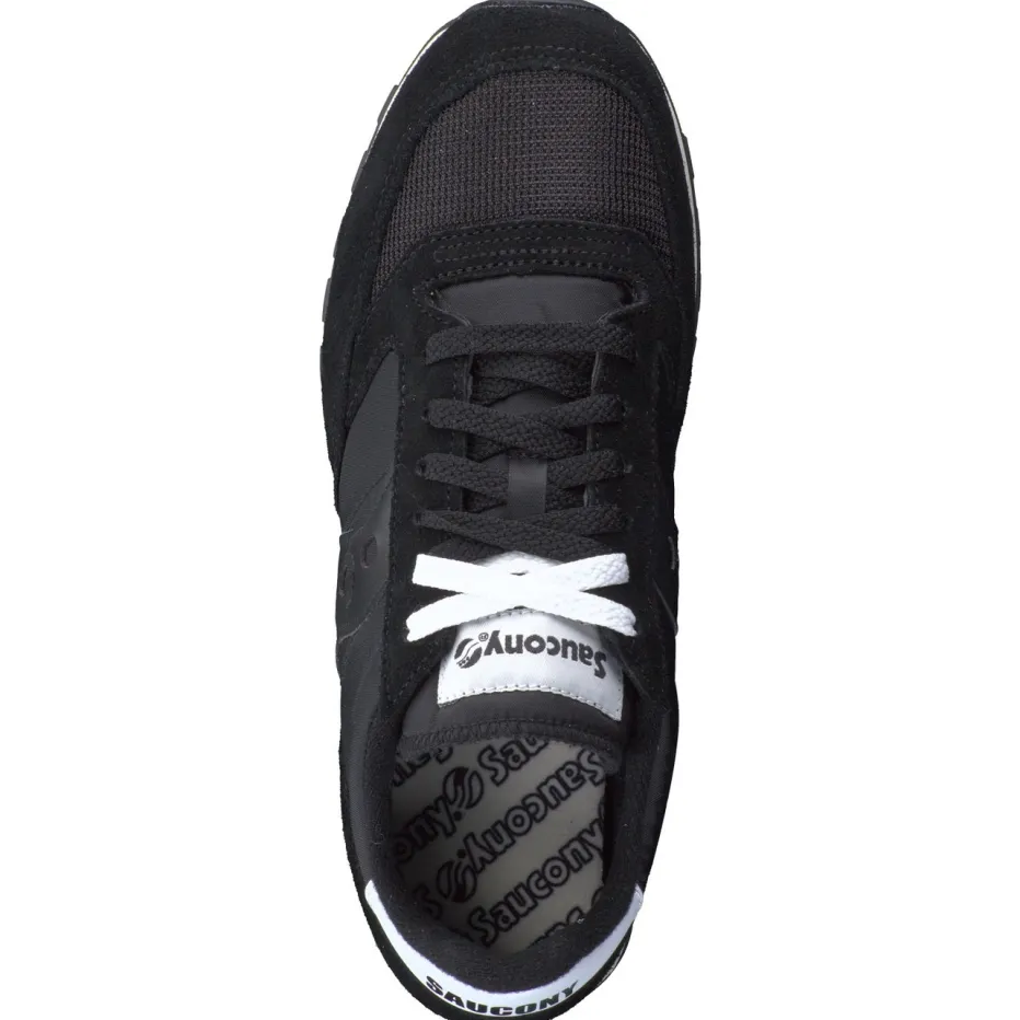Trendige Silhouette mit Retro-Faktor.Saucony bringt mit diesem Sneaker im Running-Stil ein sportlich-lässiges Unisex-Modell auf den Markt. Inspiriert vom 90er-Vintage-Look verbindet der Retro-Sneaker schwarzes Crostaleder sowie samtig angeschliffenes Veloursleder mit atmungsaktivem Hightech-Mesh und Nylon. Die flach-schmale Form in Uni-Schwarz wird durch weiße Logopatches, zweifarbige Schnürung und eine beige Gummisohle akzentuiert. Die stark profilierte Laufsohle sorgt für festen Grip im Freizeitbereich oder bei leichter Bewegung. Der Look passt besonders gut zu Jogpants oder Oversized Hoodies. Geradliniges Streetwear-Design mit maximalem Alltagskomfort.