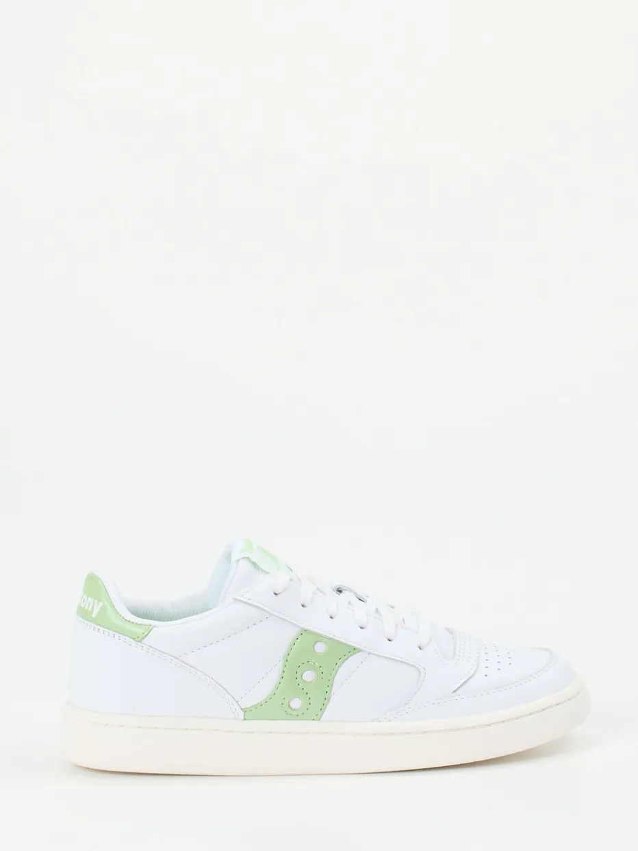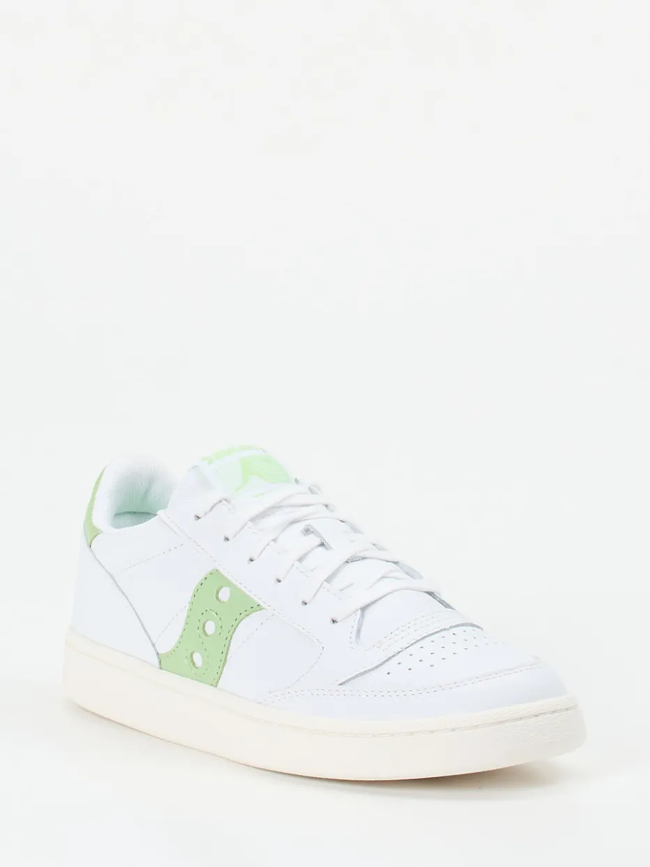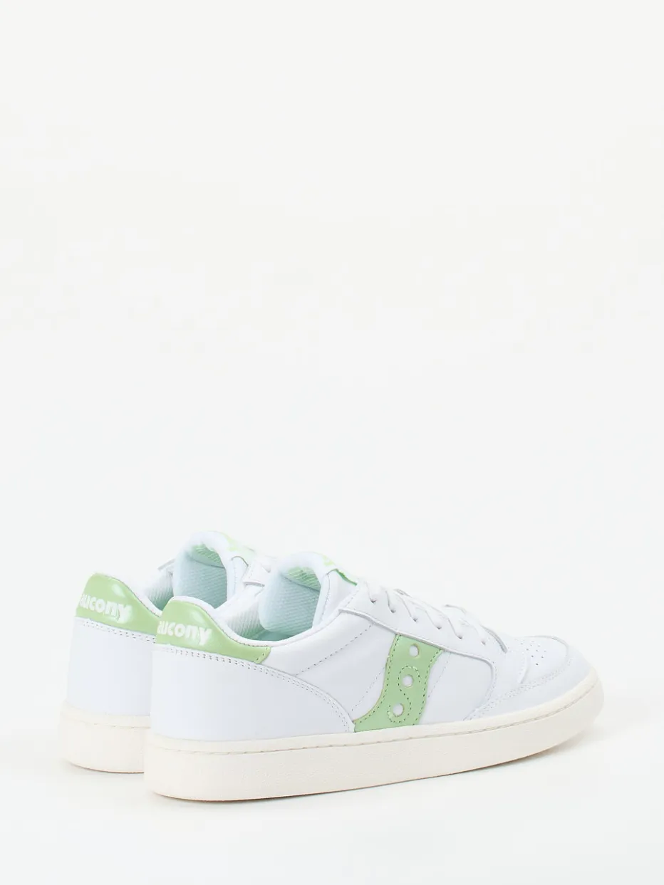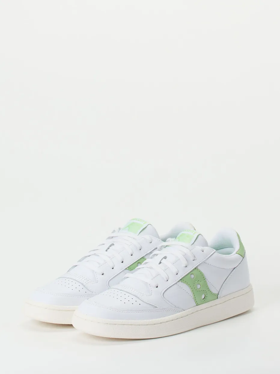 Pastell trifft Retro-Charme.Der Jazz Court von Saucony ist ein Sneaker-Klassiker mit klarem Designverständnis. Ideal für alle, die im Alltag auf schlichte Coolness und sanfte Farbakzente setzen: Das Modell präsentiert sich in weißem Vollnarbleder mit mattem Finish, ergänzt durch glänzende Lackleder-Elemente in Pastellgrün an Ferse und Seite. Die perforierte Zehenkappe, das tonige Markenlogo und die klassische Schnürung unterstreichen den sportlich-minimalistischen Retro-Court-Look. Eine weich gepolsterte Innensohle sowie das atmungsaktive Textilfutter bieten ganztägigen Tragekomfort. Trendgerecht zur SS24-Palette lassen sich die Sneaker vielseitig kombinieren – ob zur Jogpants oder Chino. Saucony steht hier für hochwertigen Materialmix und durchdachten Everyday-Style.