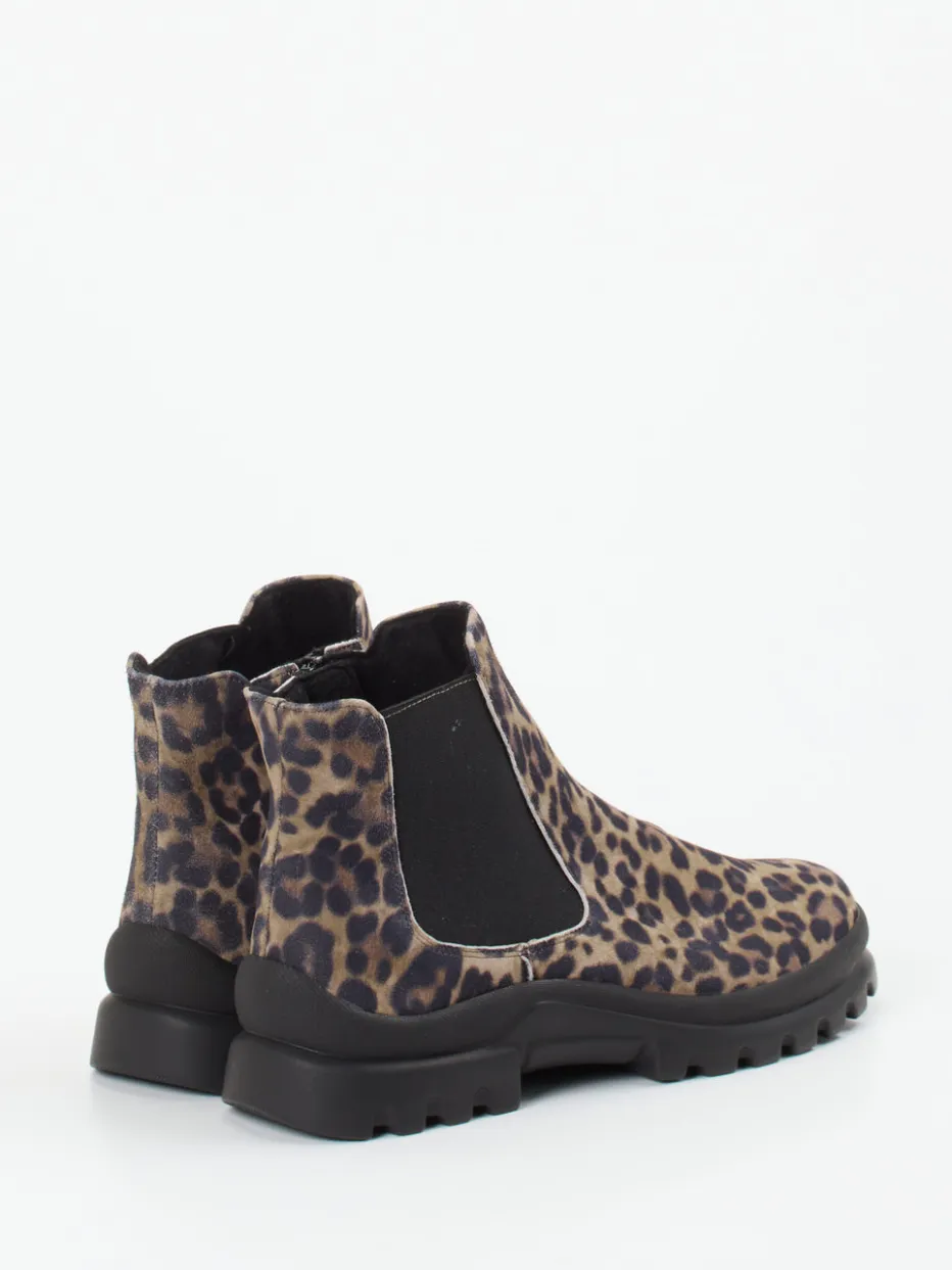 Diese Chelsea Boots kombinieren markanten Leoprint mit einer griffigen Profilsohle und bieten durch Elastikeinsätze und Wechselfußbett hohen Komfort für stilbewusste Trägerinnen.
