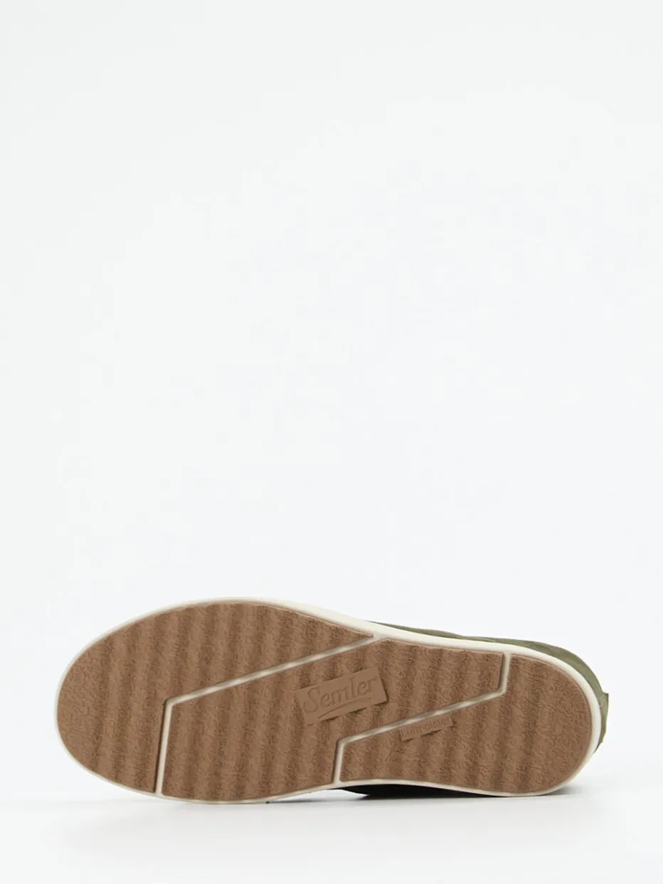 Komfort trifft auf urbane Minimalistik.Semler präsentiert mit dieser Schnürstiefelette eine stilvolle Ergänzung für moderne Damen-Outfits. Ideal für lange Herbstspaziergänge oder entspannte Tage in der Stadt: Das tannengrüne Veloursleder mit samtig-matter Oberfläche trifft auf eine lässige High-Top-Silhouette. Die Kombination aus Schnürung und seitlichem Reißverschluss sorgt für Komfort und Flexibilität. Dezente tonale Nähte und silberfarbene Ösen setzen dabei subtile Akzente. Die bequeme PU-Luftpolstersohle unterstützt ein angenehmes Laufgefühl und die Innenausstattung mit Wechselfußbett bietet Raum für individuelle Einlagen. Der natürliche Farbton liegt voll im Trend „Quiet Luxury“. Semler steht für bequeme Passform und unaufgeregten Stil in höchster Qualität.