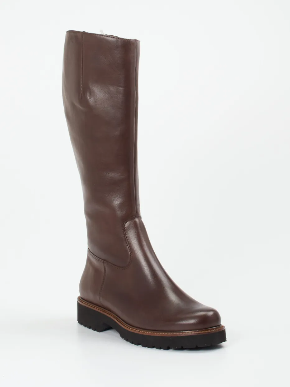 Schokoladenbraunes Understatement mit Grip.Semler bringt mit diesem Kniestiefel ein Modell für Damen, das Komfort und Stil auf raffinierte Weise vereint. Ob für den Weg zur Arbeit oder herbstliche Spaziergänge – der aus schokoladenbraunem Kalbleder gefertigte Stiefel überzeugt mit seiner samtglatten Oberfläche und einer robusten Profilsohle samt Kontrastrahmen. Die gerade Silhouette mit seitlichem Reißverschluss sowie elastischem Einsatz passt sich angenehm an, während das Microfaser-Innenfutter und die bequeme Weite H für Tragekomfort sorgen. Minimalistisches Design und Utility-Elemente unterstreichen seinen vielseitigen Charakter. Ideal kombiniert mit einem Strickkleid oder Oversized-Mantel. Semler steht hier für hochwertigen Komfort mit stilvoller Zurückhaltung.