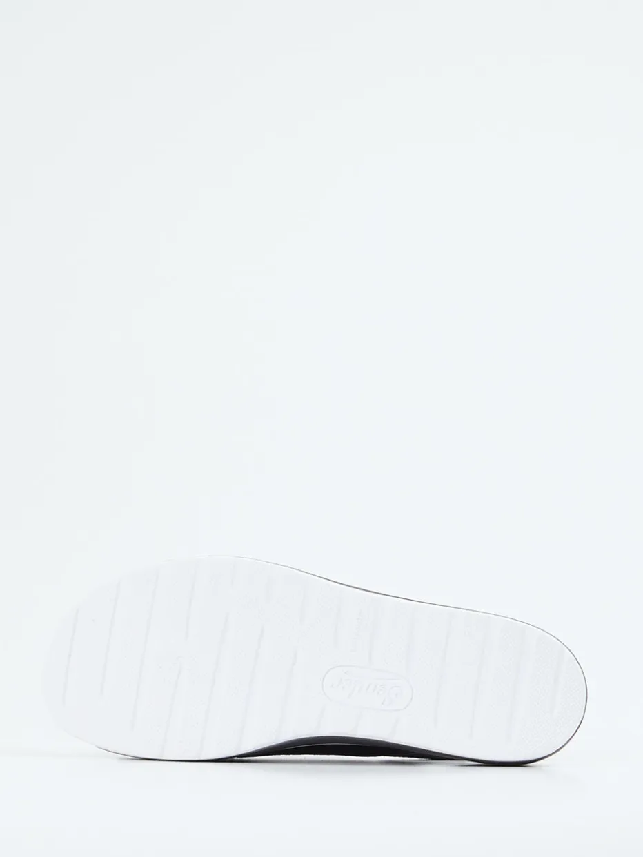 Die Komfort-Sandale von Semler verbindet durchdachte Funktion mit eleganter Zurückhaltung. Aus hochwertigem Veloursleder gefertigt, bietet sie sanften Halt in einer dunkelblauen, matten Optik und sitzt dank des Klettverschlusses individuell angepasst. Die ergonomische Form, das austauschbare, gepolsterte Fußbett und die rutschhemmende PU-Sohle mit dezentem Keil bieten optimalen Tragekomfort – auch an langen Tagen. Dekorative Ton-in-Ton-Nähte und die zweifarbige Sohle setzen stilvolle Akzente. Ideal für Freizeit-Outfits zwischen Soft Utility und Casual Chic, etwa zur Leinenhose oder leichten Sommerbluse.