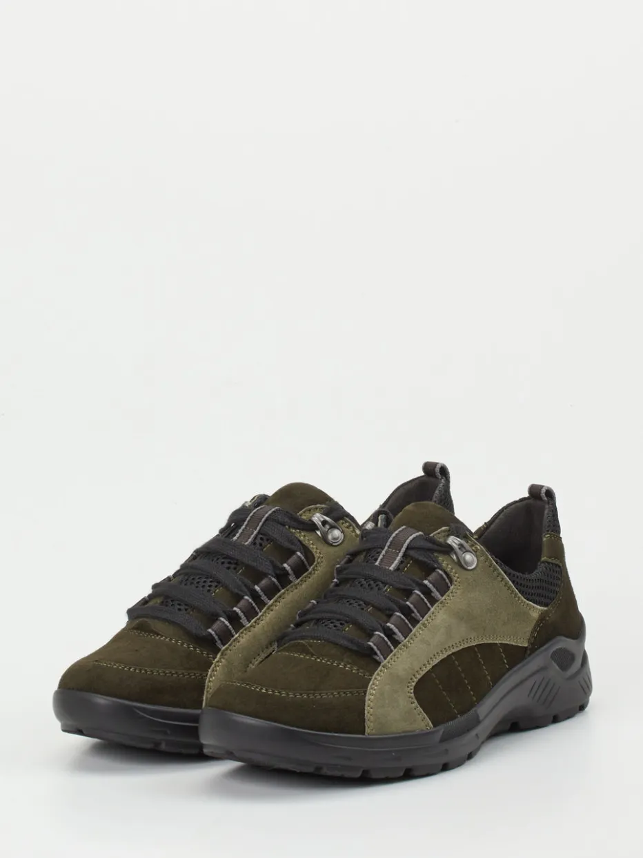Sportiver Komfort in Oliv und Khaki.Die Marke Semler präsentiert einen vielseitigen Komfort-Sneaker für Damen. Dieses Modell überzeugt durch seine funktionale Eleganz und robuste Verarbeitung. Für Spaziergänge im Grünen oder lange Tage in der Stadt bietet der Schnürschuh ein angenehmes Trageerlebnis. Das dunkelgrüne Veloursleder, samtig matt und mit tonalen Ziernähten versehen, harmoniert gekonnt mit atmungsaktivem Mesh in Khaki. Die sportlich geformte Silhouette wird durch eine profilierte PU-Sohle und funktionale Details wie Metallösen, gepolsterten Schaftrand und seitliche Zuglasche ergänzt. Das austauschbare Fußbett unterstützt individuelle Bedürfnisse, während der Gorpcore-Stil einen aktuellen Look verleiht. Hochwertiger Komfort mit durchdachter Outdoor-Ästhetik von Semler.