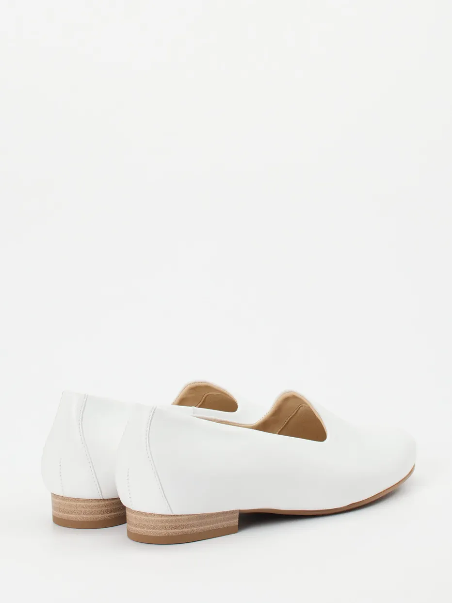 Der Loafer von Semler bietet klassische Eleganz für Damen mit einem Gespür für Understatement. Das schneeweiße Kalbleder mit matter Oberfläche verleiht dem Modell eine cleane Optik. Die flache, feminine Silhouette mit schlupffreundlichem Einstieg, naturfarbenem Blockabsatz und Ton-in-Ton-Nähten unterstreicht den minimalistischen Stil. Innen sorgen Softlederfutter und ein gepolstertes Wechselfußbett für angenehmen Tragekomfort – auch für eigene Einlagen geeignet. Mit Anklängen an „Quiet Luxury“ passt der Schuh in gepflegte Freizeitoutfits und dezente Business-Garderoben. Zu Trenchcoat und Lederhandtasche entsteht ein harmonischer Look. Komfort und Design im Gleichgewicht – dafür steht Semlers Anspruch an moderne Bequemschuhe.
