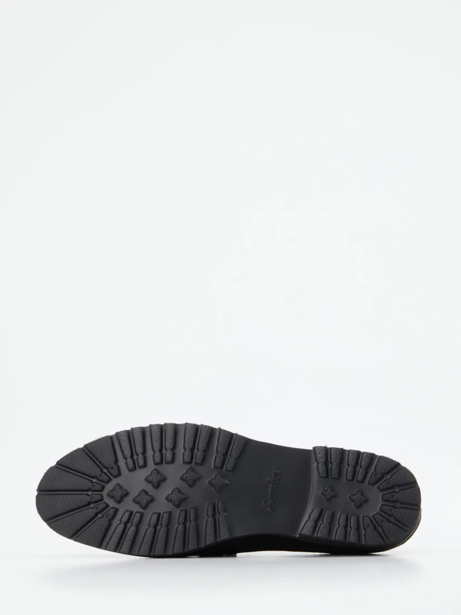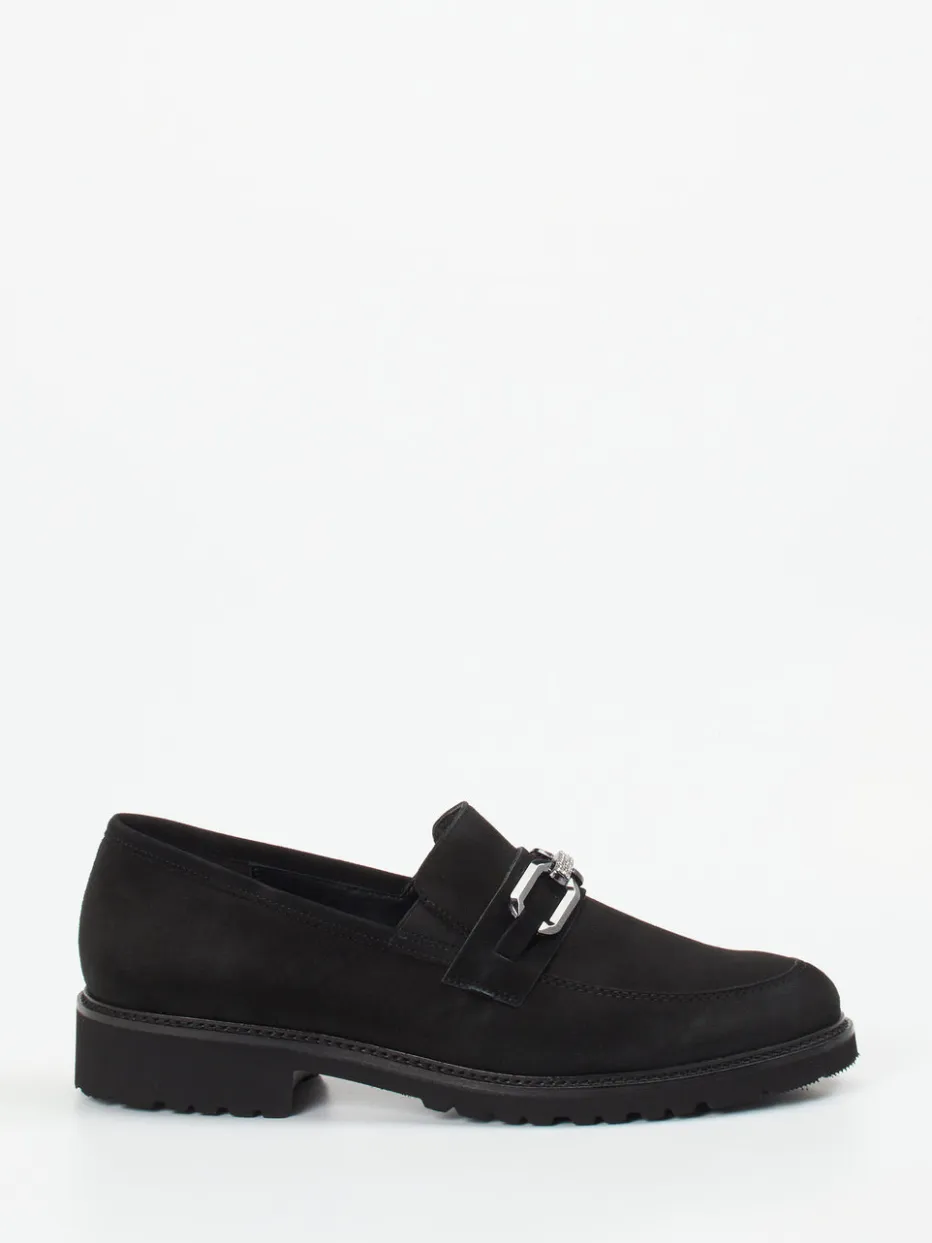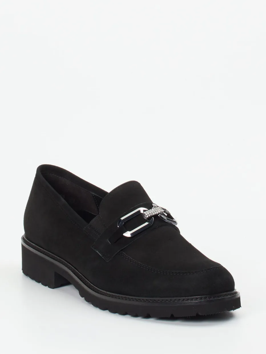 Stilvoller Komfort neu interpretiert.Semler präsentiert mit diesem Damenloafer ein Modell, das klassische Linie und Moderne vereint. Für Tage mit langem Stehen oder Gehen bietet der Loafer aus feinsamtigem Veloursleder verlässlichen Tragekomfort. In tiefem Schwarz gehalten, überzeugt das Design durch eine strukturierte, matte Oberfläche und eine auffällige Metallspange mit Strassdetails. Die flache Silhouette mit Blockabsatz, das gepolsterte Fußbett in Weite G sowie rutschhemmendes Profil geben sicheren Halt und ein gutes Laufgefühl. Inspiriert vom Chunky Loafer Trend und „Quiet Luxury“, harmoniert er mit Plissee-Rock und strukturierter Bag. Ein vielseitiger Begleiter mit Semler-typischer Qualität und Leichtigkeit.