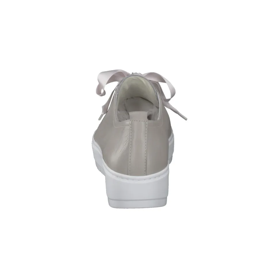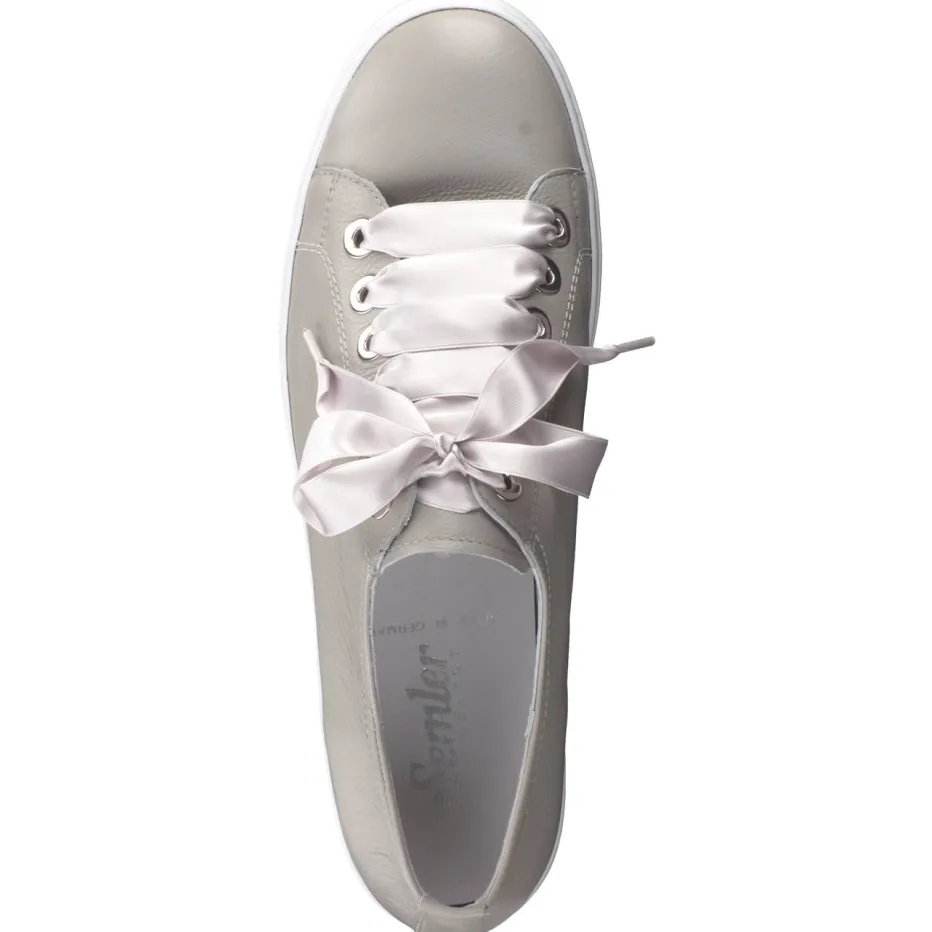Dezente Eleganz trifft auf Alltagstauglichkeit.Der Damen-Sneaker von Semler vereint hochwertige Verarbeitung mit modernen Komfortstandards. Ideal für entspannte Alltagsmomente kombiniert das Modell Kalbleder mit genarbter Oberfläche und satinierter Schnürung – ein femininer Akzent in Hellgrau mit Rosé- und Weißnuancen. Die klassische Rundform, silberfarbene Ösen und eine verstärkte, profilierte Gummisohle prägen den reduzierten Look. Dank Weite G, Lederfutter und herausnehmbarem Fußbett profitieren komfortaffine Trägerinnen von angenehmer Passform. Modisch eingebettet in den Trend „Soft Neutrals“, lässt sich der Sneaker besonders gut mit Jersey-Hose und hellen Accessoires kombinieren. Luftgepolstert und stilbewusst – Semler-Komfort für entspannte Stunden.