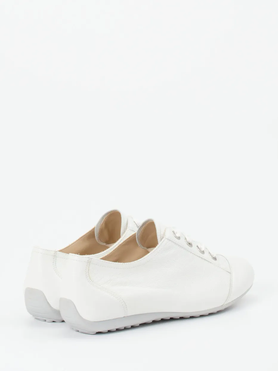Schlichtes Design mit Komfortplus.Semler präsentiert mit diesem Damen-Schnürschuh ein Modell der Komfortklasse. Für entspannte Spaziergänge oder lange Tage unterwegs bietet der Sneaker aus genarbtem Kalbleder eine ideale Kombination aus Stil und Funktion. In klarem Weiß mit rund zulaufender Silhouette, weich gepolsterter Ferse und breiten Satin-Schnürsenkeln passt er zum modernen „Quiet Luxury“-Trend. Die profilierte Gummisohle mit integriertem Luftpolster sorgt für rutschhemmenden Halt, während das herausnehmbare Vario-Fußbett Platz für eigene Einlagen bietet. Für komfortbewusste Casual-Outfits mit hochwertiger Note.