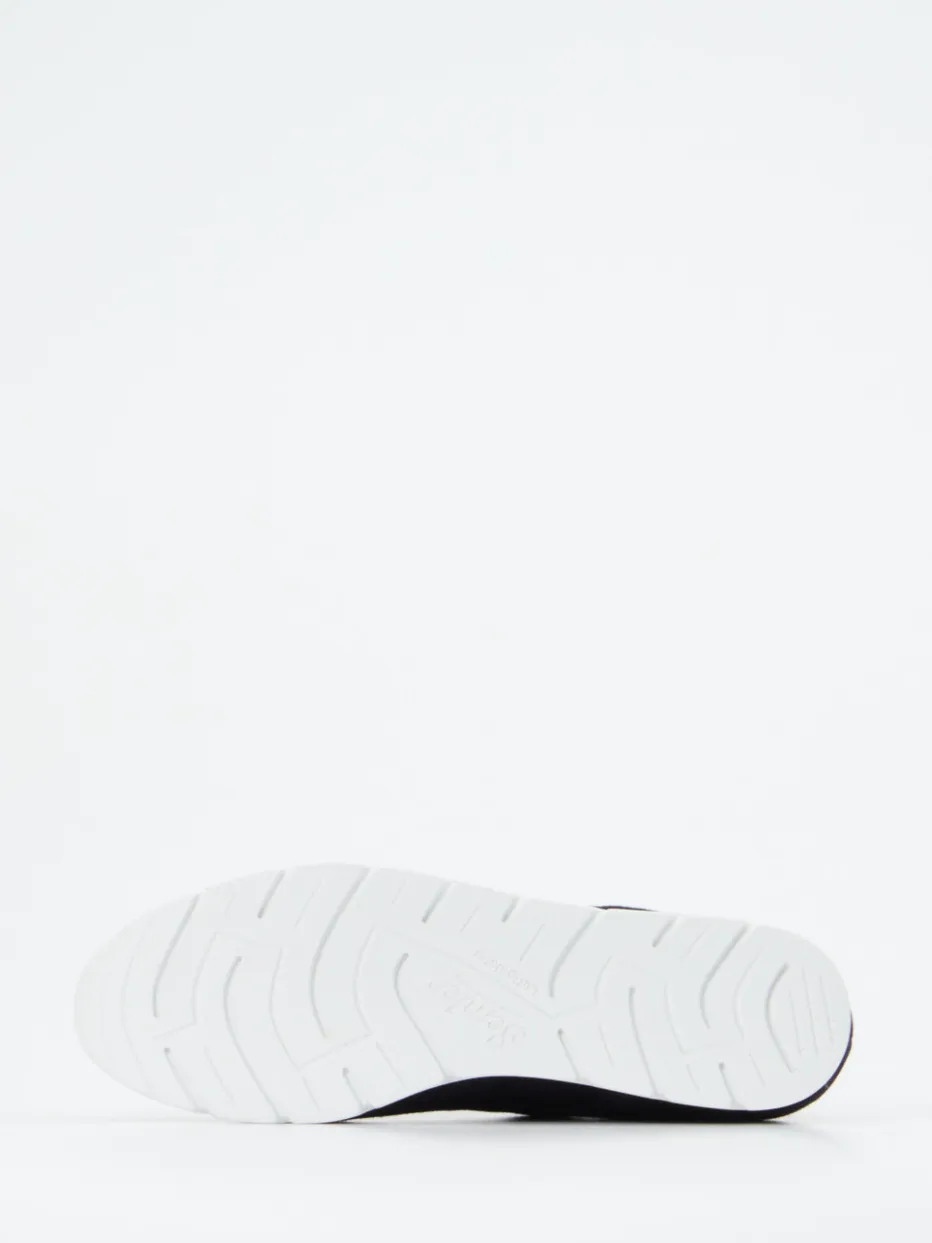 Dieser minimalistische Sneaker vereint samtiges Veloursleder mit glänzenden Lackakzenten und bietet dank PU-Luftpolstersohle und Weite H hohen Tragekomfort – ideal für Alltag und Büro.