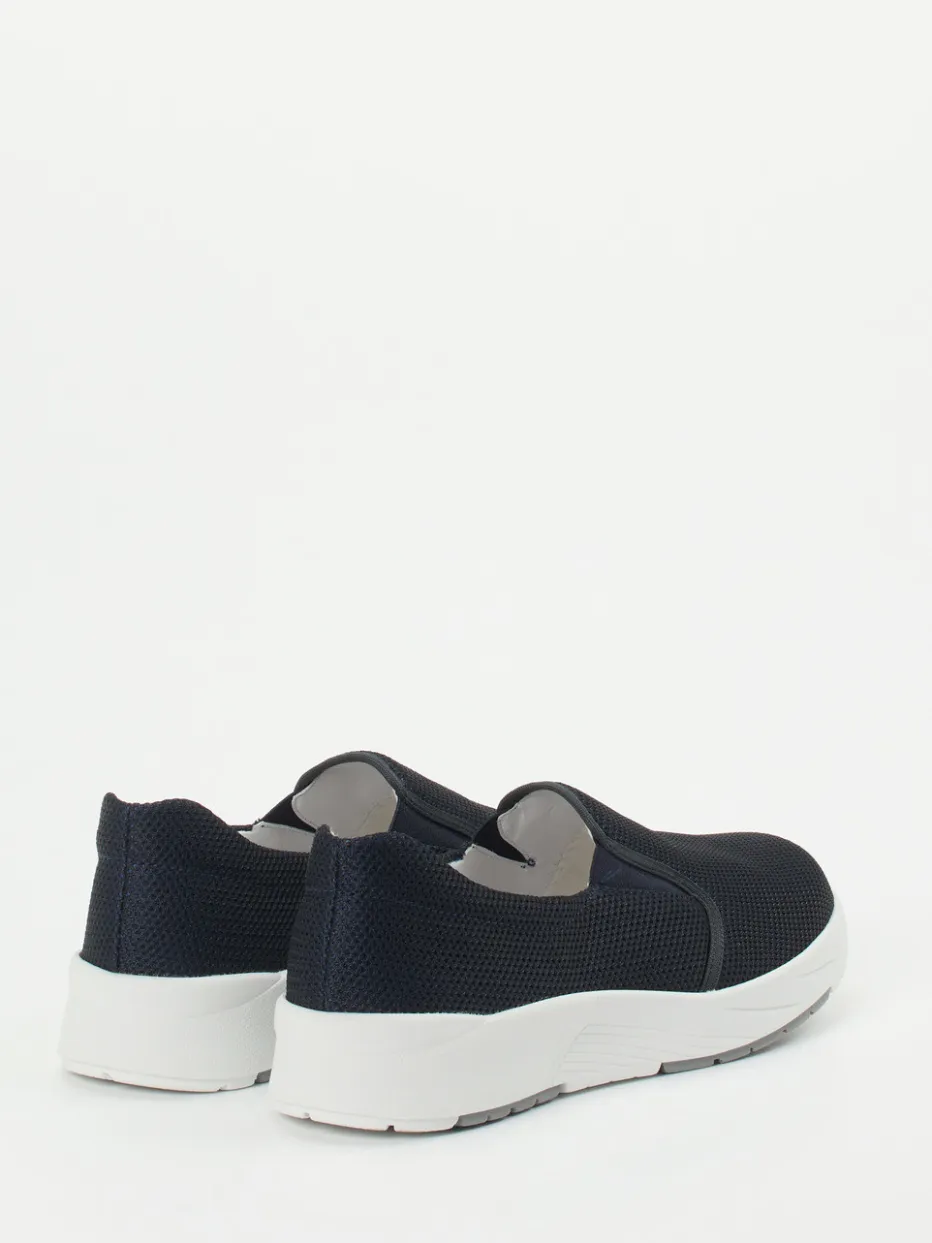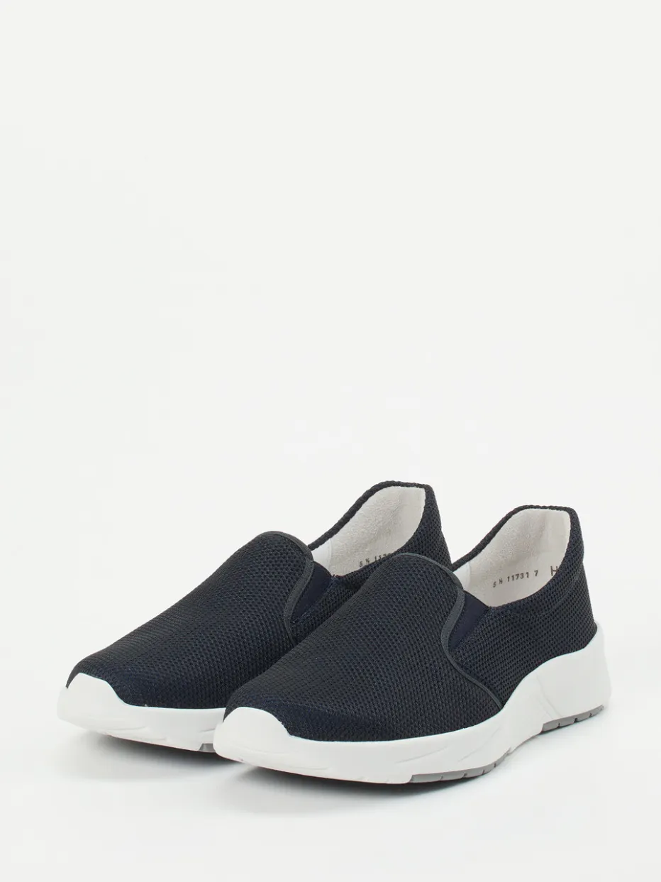 Sportiver Komfort für entspannte Tage.Semler präsentiert mit diesem Damen-Slip-On einen durchdacht designten Freizeitschuh. Ob unterwegs in der Stadt oder beim Relaxen zu Hause – das extrem leichte Textil-Obermaterial mit mesh-strukturierter Oberfläche bietet zusammen mit seitlichen Elasteinsätzen und gepolstertem Schaft höchsten Tragekomfort. Die tonige Dunkelblau-Optik wird subtil durch eine weiße Gummisohle mit grauen Partien vervollständigt. Sein klassisch niedriger Schnitt, die verstärkte Ferse und die rutschhemmende Sohle unterstreichen den urban-lässigen Stil. Inspiriert von Athflow- und Comfort-Core-Trends passt er hervorragend zu Freizeit- und Loungewear. Ein Schuh, der Alltagstauglichkeit mit modischer Zurückhaltung von Semler verbindet.