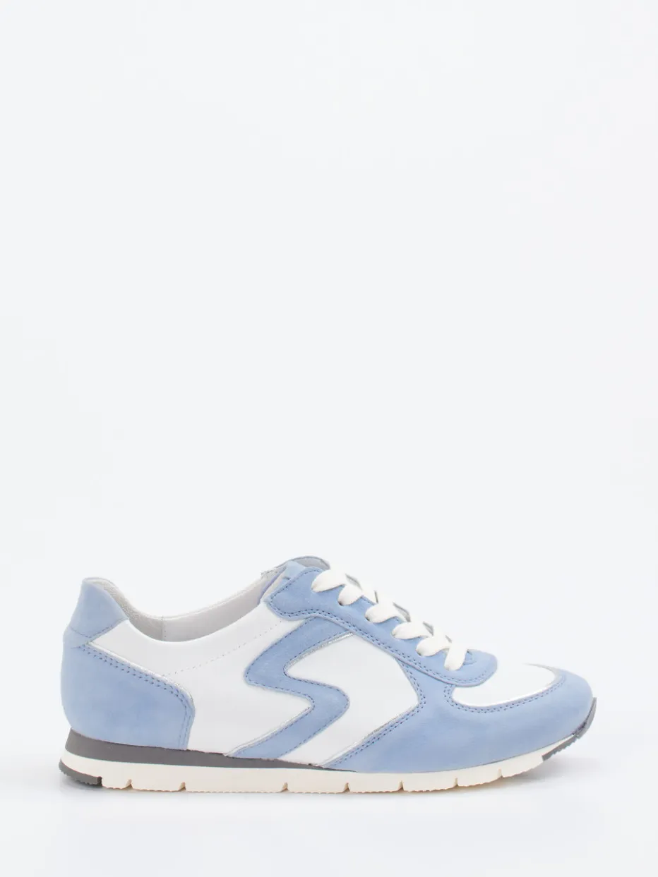 Ob beim Stadtbummel oder auf Reisen – das Modell überzeugt mit weichem Veloursleder, ergänzt durch glatte Lederpartien und ein atmungsaktives Leder-/Textilfutter. Die weiße Grundfarbe mit hellblauen Akzenten bringt frischen Pastell-Charme. Eine flach gehaltene, zweifarbige Gummisohle sowie die flexible Schnürung sorgen für Komfort und Stabilität. Geprägt vom Streetwear-Trend mit Vintage-Twist, passt dieser Sneaker perfekt zu entspannten Casual-Looks wie Jeansjacke und Crossbody-Bag.