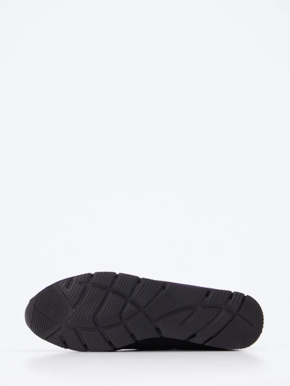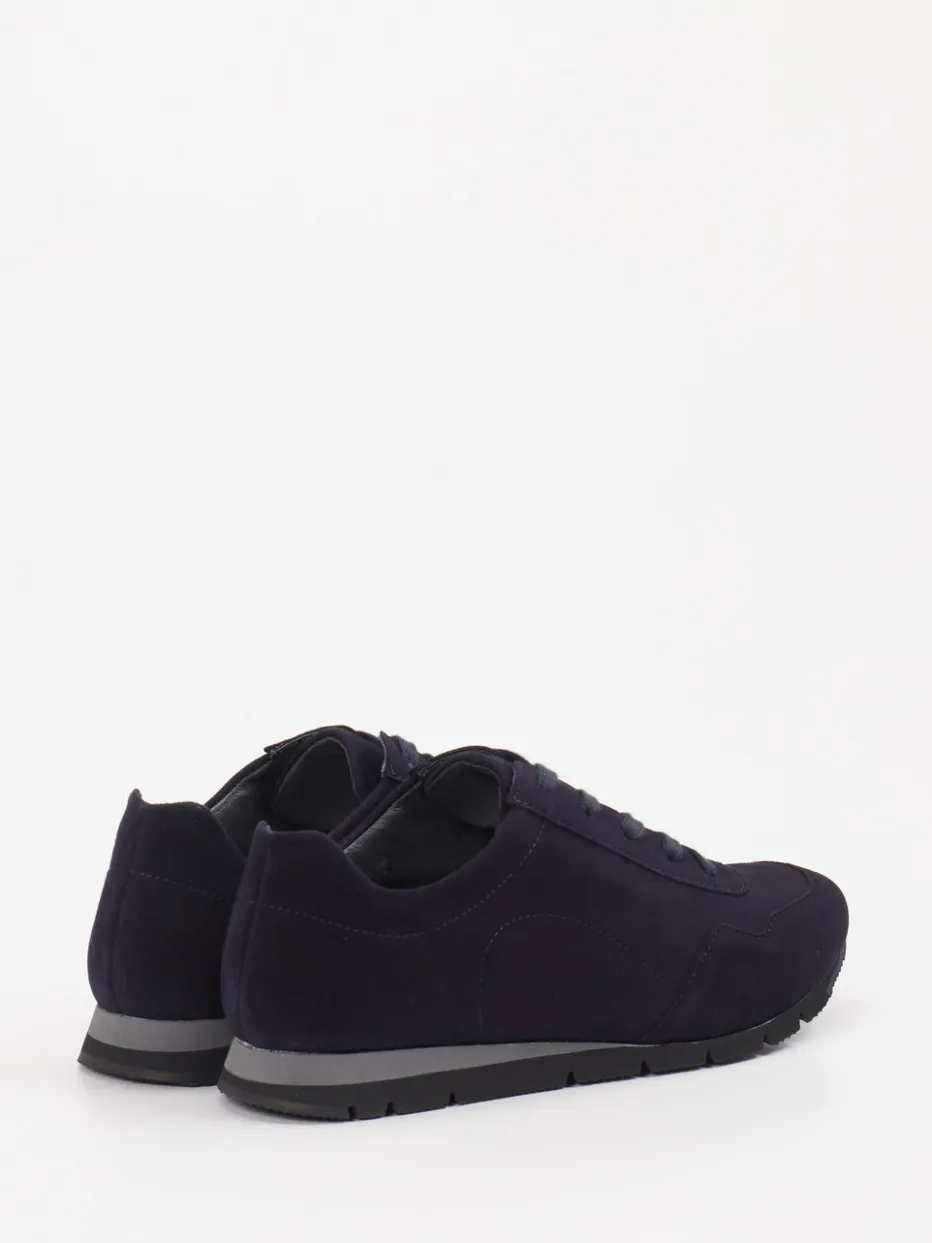 Ideal für entspannte Stadtspaziergänge oder den Weg ins Lieblingscafé: Das dunkelblaue Veloursleder mit matter Oberfläche zeigt sich in klassisch flacher Silhouette und dezenter Linienführung. Tonale Nähte sowie eine zweifarbige Laufsohle mit griffigem Profil unterstreichen den an Retro-Running angelehnten Look. Der gepolsterte Schaftrand und die weiche Fersenkappe bieten zusätzlichen Komfort, auch für Einlagen geeignet. Das Design folgt dem Quiet-Luxury-Prinzip – hochwertig ohne Aufdringlichkeit. Kombiniert mit Jogpants oder minimalistischer Denim entsteht ein entspannter Look.
