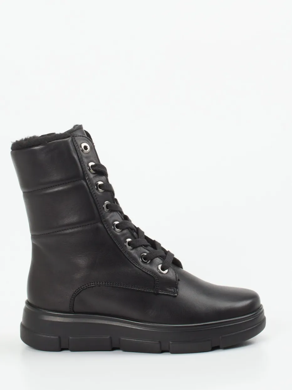 Vielseitiger Komfort für winterliche City-Tage.Diese schwarze Schnürstiefelette von Semler vereint urbanen Stil mit funktionalem Design. Ideal für lange Spaziergänge oder den täglichen Weg durch Schneematsch: Weiches Kalbleder mit matter Oberfläche trifft auf ein warmes Textilfutter in Weblammoptik. Die schmale, klassische Silhouette mit hohem Schaft wird durch Schnürung und Innenreißverschluss ergänzt. Eine robuste Gummiprofilsohle sorgt für Trittsicherheit, während die extra Weite H bequemen Raum bietet. Die silberfarbenen Metallösen setzen dezente Akzente. Gut kombinierbar zu Thermoleggings oder Steppjacke. Semler steht für stilvolle Funktionalität mit spürbarem Fußkomfort.