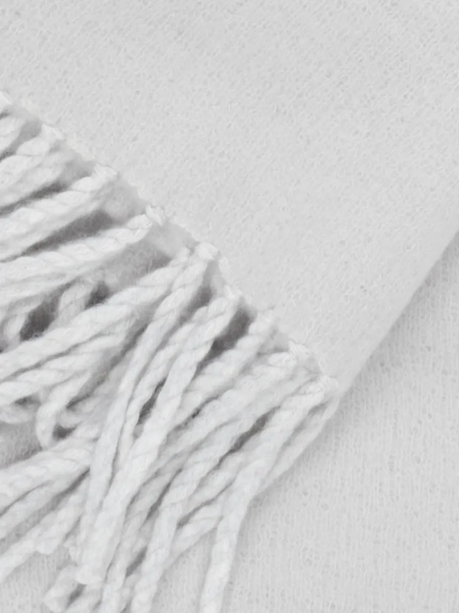 Luxuriöser Kaschmir trifft auf minimalistisches Design: Dieser weiche Fransenschal in Hellgrau überzeugt durch seine flauschige Haptik und zeitlose Eleganz.