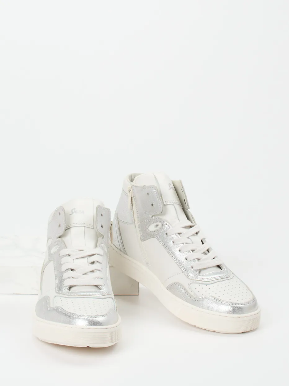Damen Sioux – High-Top Sneaker aus Metallicleder Offwhite
