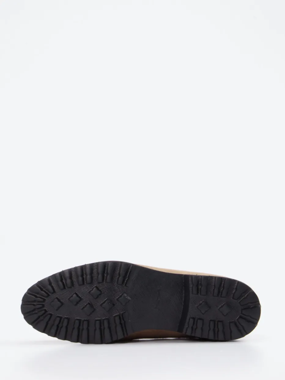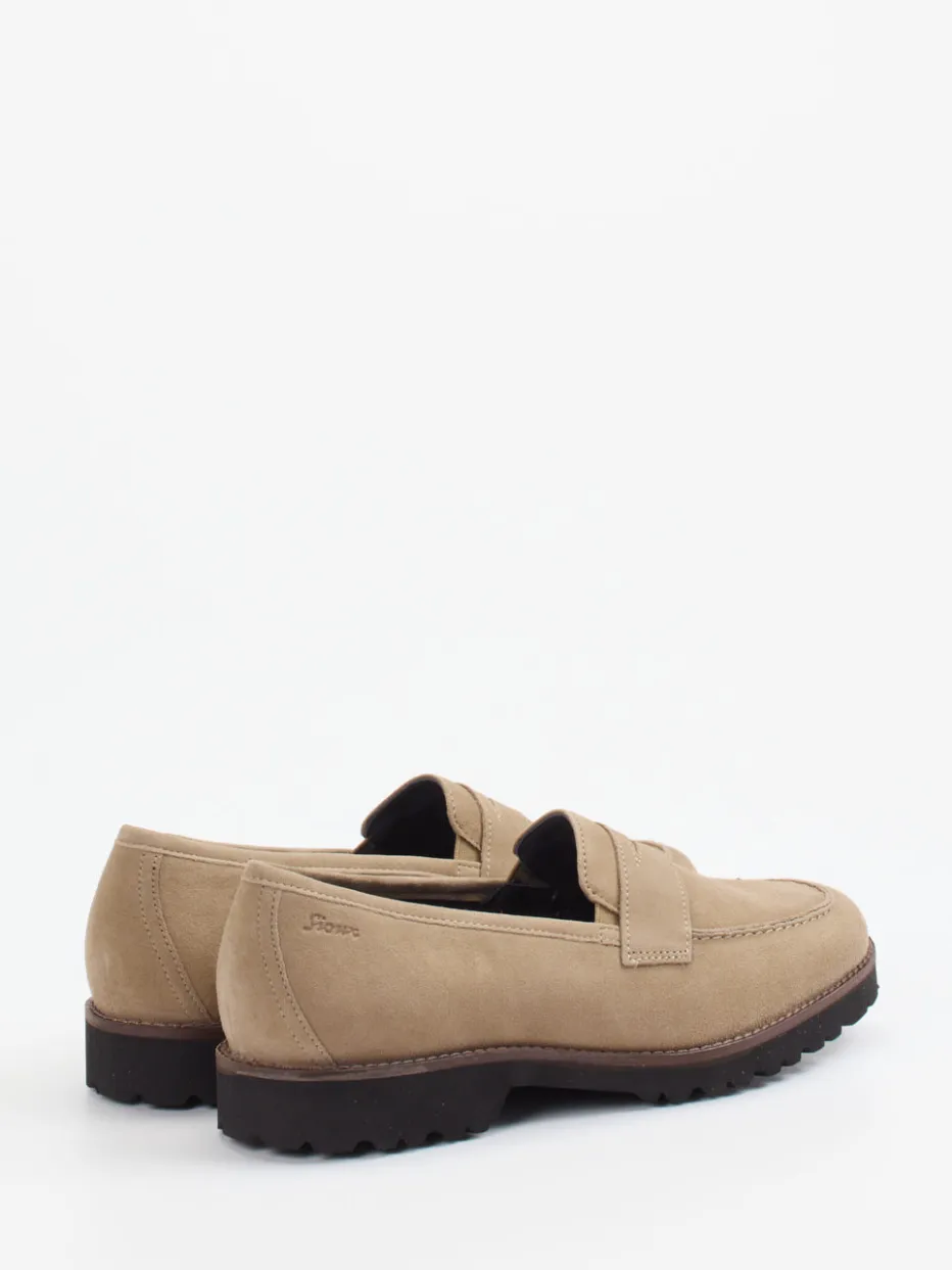 Klassische Eleganz mit Profil.Der Damen-Loafer von Sioux vereint zeitlose Optik mit hohem Komfort. Für berufliche Termine oder einen stilvollen Stadtbummel bietet das beigebraune Modell aus weichem, samtig angeschliffenem Veloursleder eine überzeugende Kombination aus Eleganz und Funktionalität. Die flache, klassische Silhouette wird durch eine markant profilierte Gummisohle ergänzt, die sicheren Halt garantiert. Feine Ton-in-Ton-Nähte, ein Penny-Strap auf dem Blatt sowie ein dezentes Logo unterstreichen die hochwertige Verarbeitung. Dank Weite H und gepolstertem Fußbett ist auch längeres Tragen kein Problem – Einlagen sind optional einsetzbar. Besonders passend zu Naturtönen und minimalistischen Outfits. Ein urbaner Klassiker im Zeichen zurückhaltenden Luxusanspruchs von Sioux.