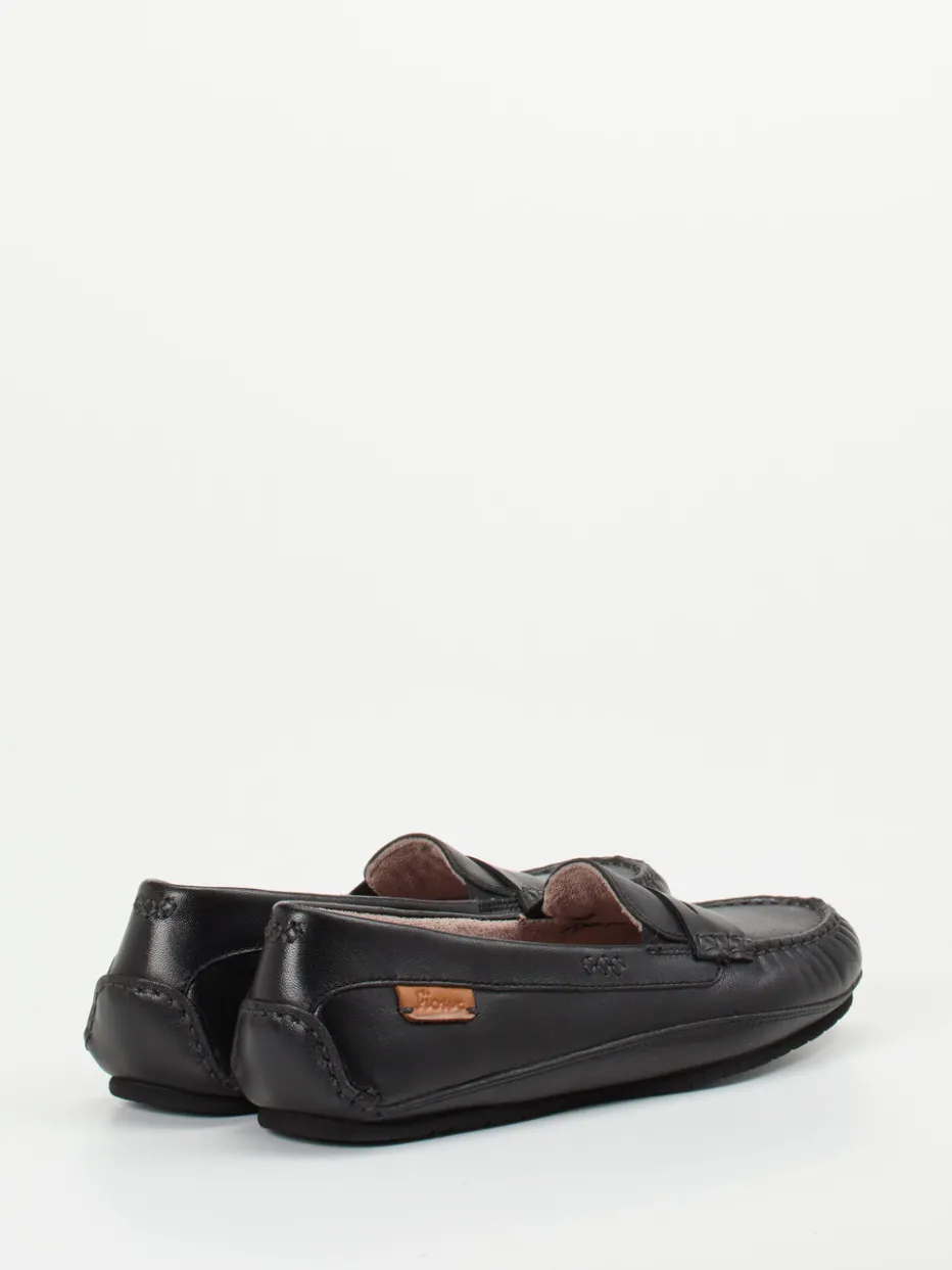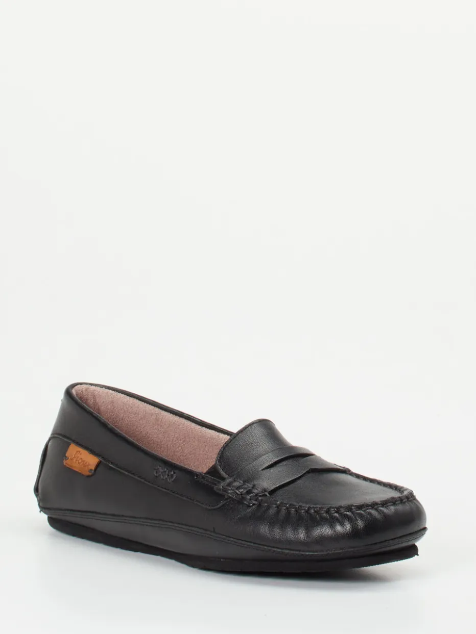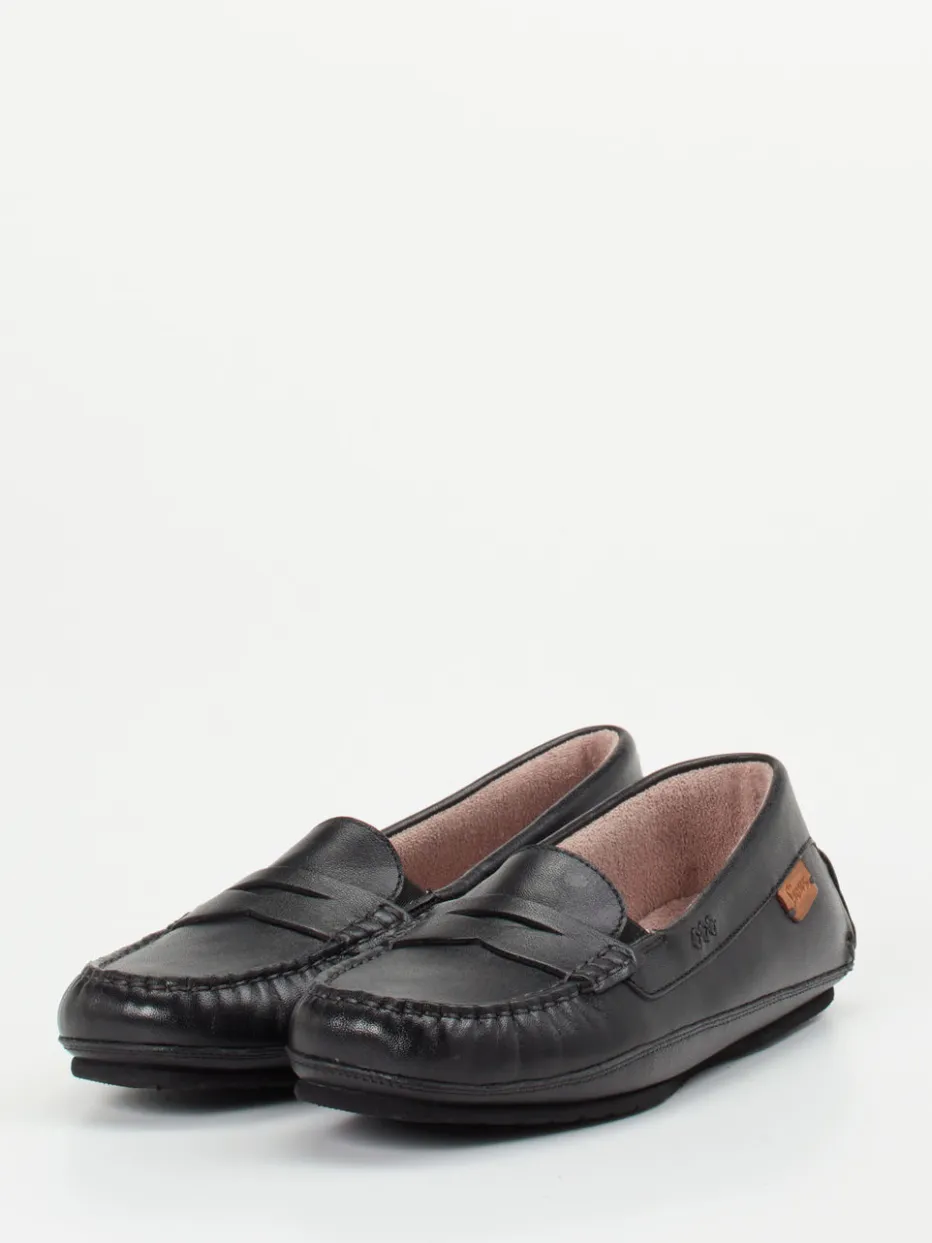 Klassik modern gedacht.Sioux präsentiert mit diesem Mokassin ein elegantes Modell für Damen. Für gepflegte Alltagsmomente oder das Büro kombiniert der flache Schlupfschuh edles schwarzes Kalbleder mit einer matten Oberfläche und tonigen Ziernähten. Ein geprägtes Markenlogo auf einem seitlichen Patch und die schmal gehaltene Form unterstreichen den klassischen Charakter mit moderner Note. Die flexible Gummisohle sorgt für angenehmes Laufgefühl, das Textilfutter aus Frottee steigert den Tragekomfort. Stilistisch passt der Schuh optimal in klassische und komfortorientierte Garderoben – ein passender Begleiter zu Stoffhosen und monochromen Looks. Verlässlicher Komfort mit zeitloser Formsprache – typisch Sioux.