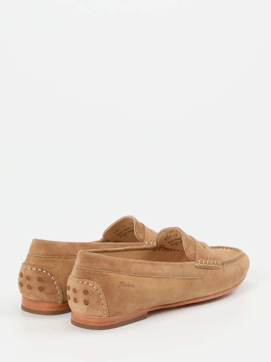 Dieser Mokassin von Sioux überzeugt durch weiches Veloursleder, eine klassische Silhouette und dezente Ziernähte – perfekt für stilbewusste, komfortorientierte Looks.